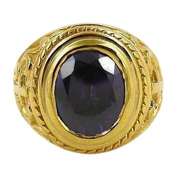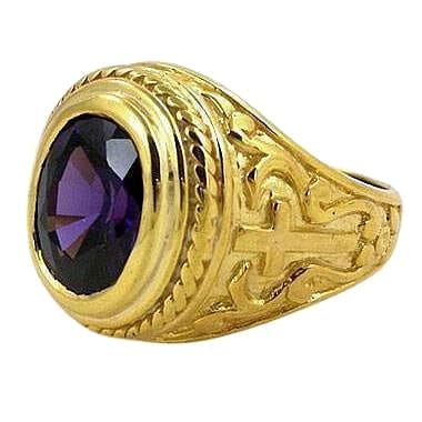Ozdobny Pierścień Biskupi z Żółtego Złota z Ametystem