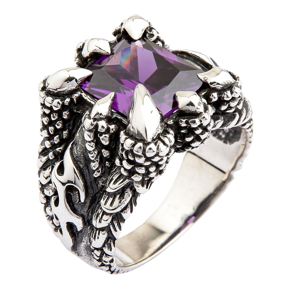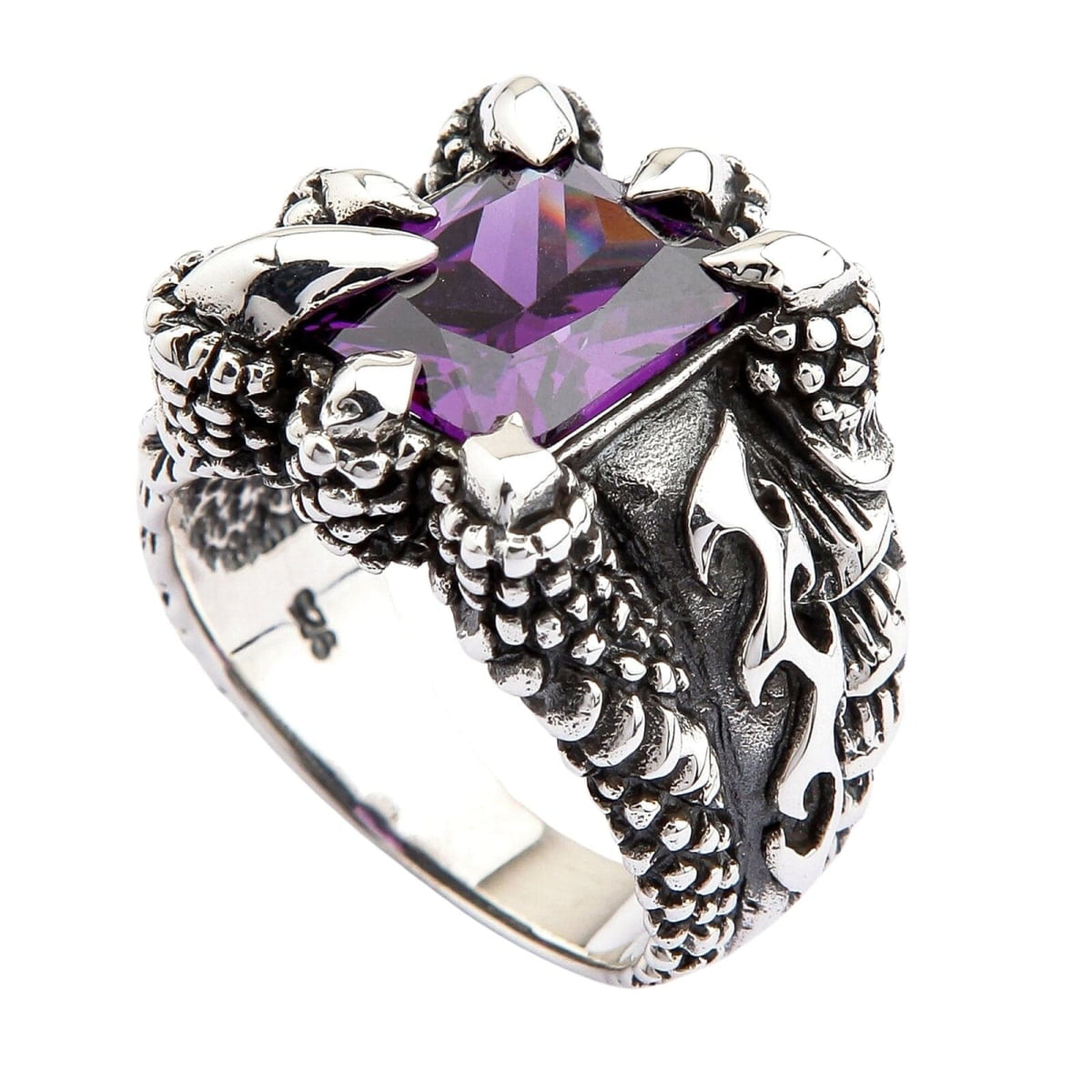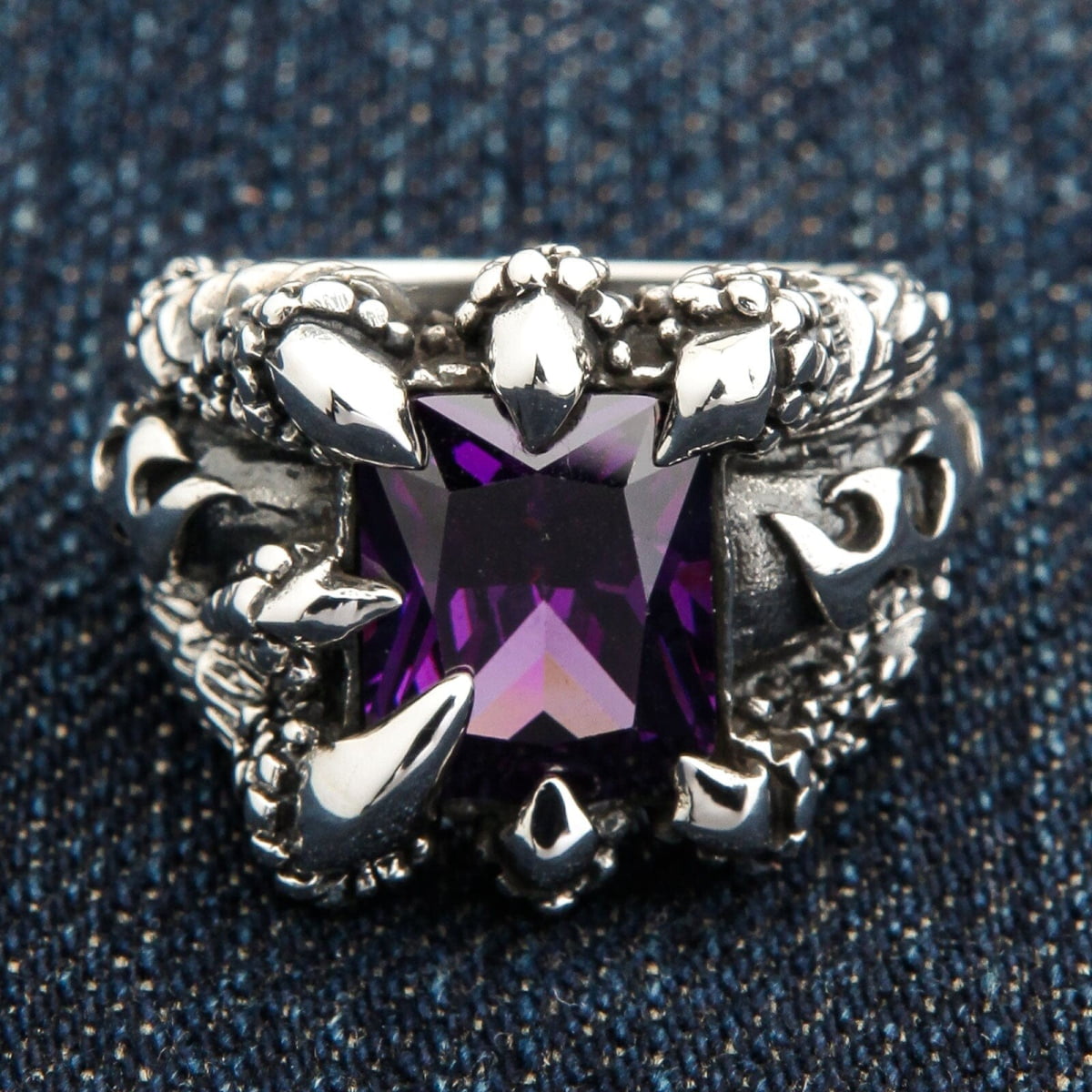 Sterling Silver Amethyst Eagle Claw Gothic Ring