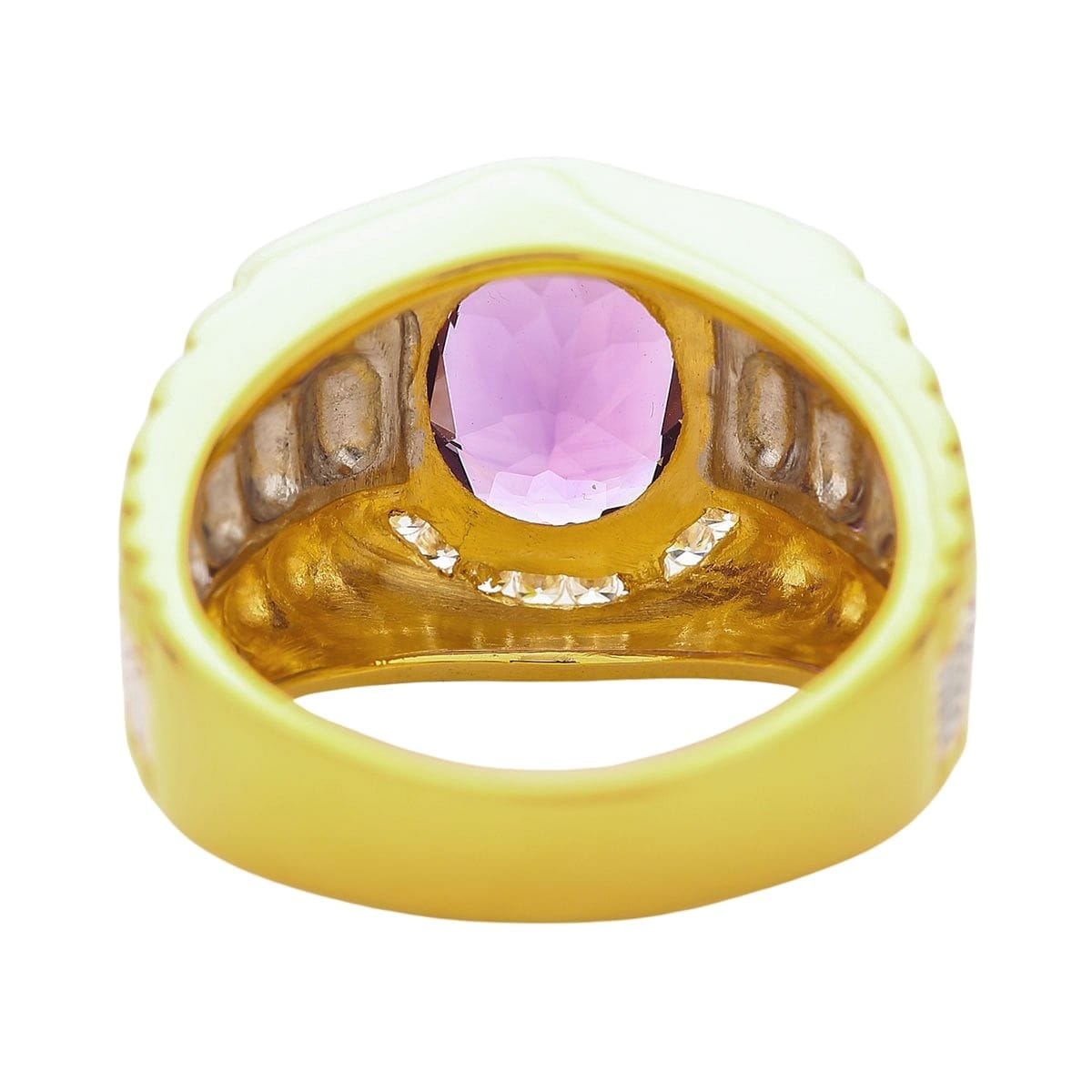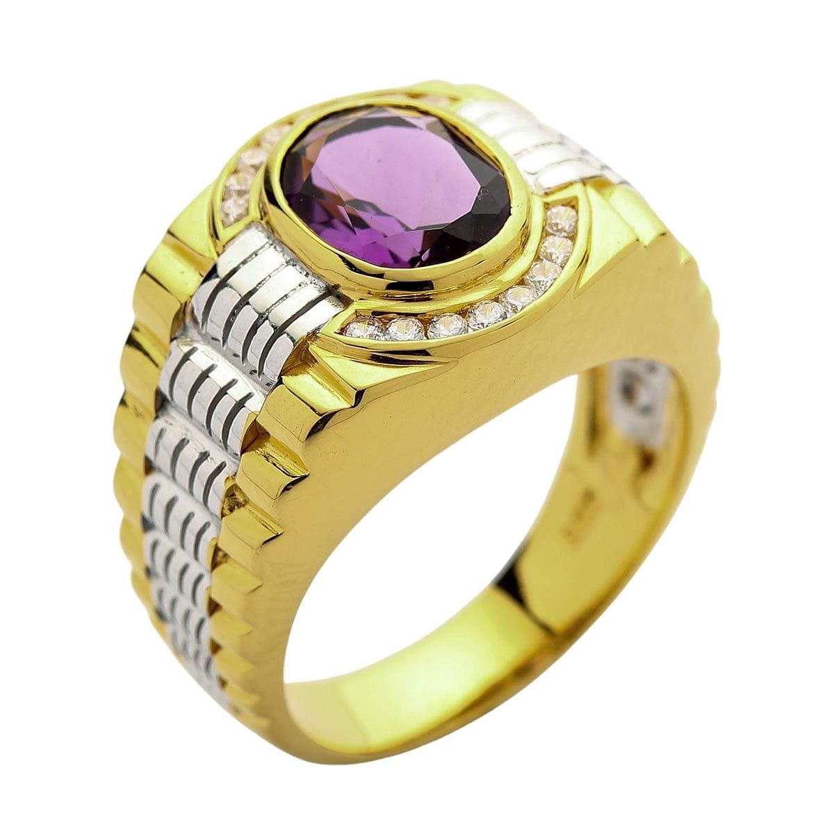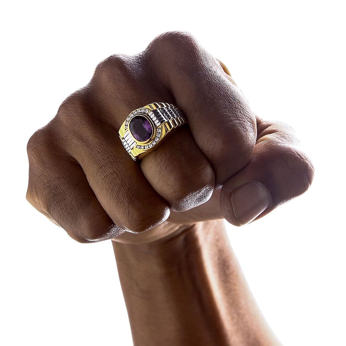 Make a bold, luxurious statement with our Amethyst Rolex-inspired Ring. This isn't just a ring; it's a piece of wearable art, handcrafted from solid 925 sterling silver and plated with a thick, 3-micron layer of 14K gold. At its heart, a massive 3.5-carat natural amethyst glows with a deep purple brilliance, capturing a look of timeless power and sophisticated style.