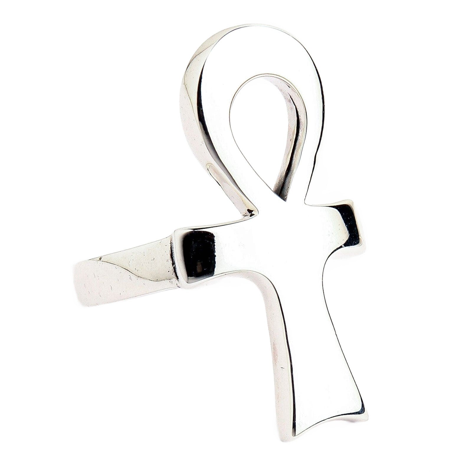 Our artisans have captured the iconic looped cross shape in a sleek, minimalist design. The entire piece is polished to a flawless, mirror-like shine, emphasizing its clean, fluid lines and elegant form. Crafted from a solid piece of silver, its substantial 12-gram weight feels reassuring and high-quality on your finger. This modern take on an ancient symbol creates a versatile piece that is both a potent spiritual accessory and a stylish statement with strong unisex appeal.