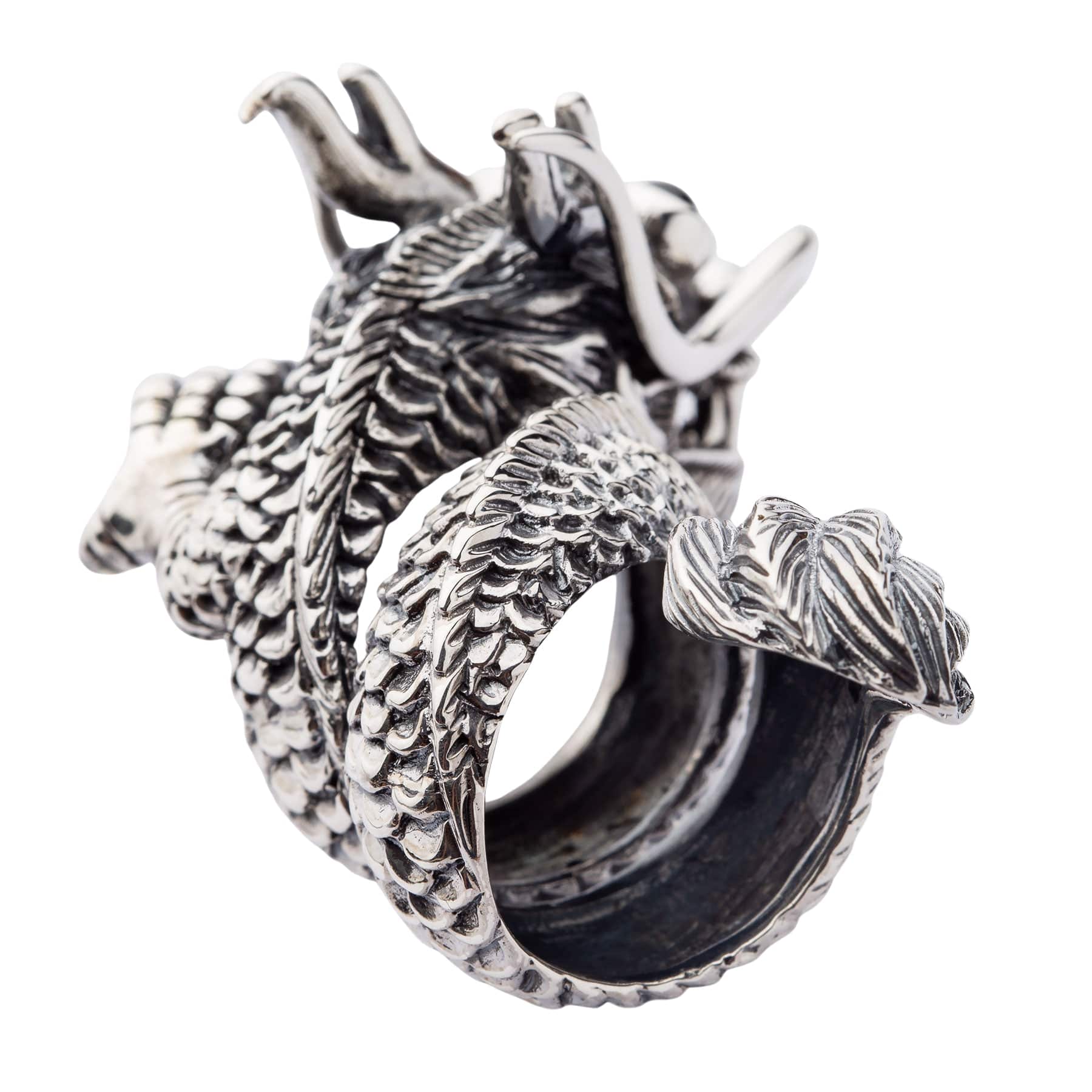 If you collect large sculptural jewelry — this ring has the surface area to show detail that smaller dragon rings can't: individual scales visible without magnification, nostril flares, jaw definition, claw articulation. At 50×75mm, the artisan had enough room to work at near-miniature-sculpture resolution.