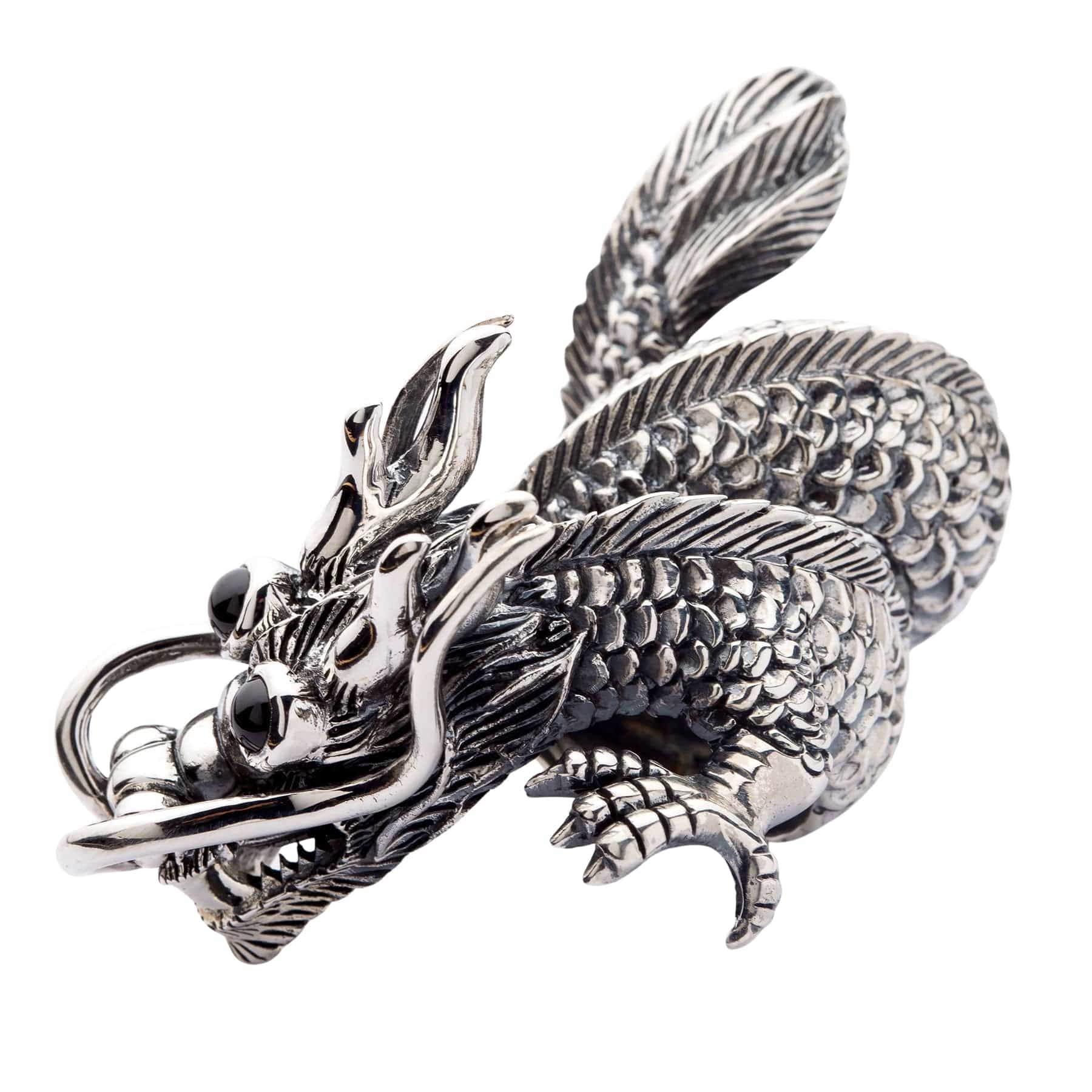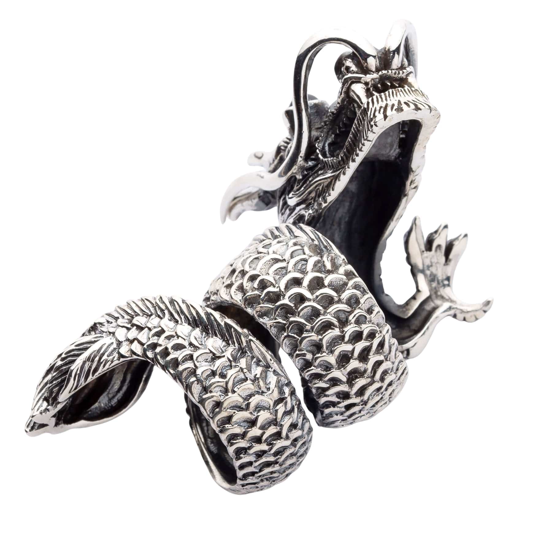 If you want Eastern dragon symbolism at a wearable mid-weight, the Dragon Yin Yang Ring combines a dragon with a yin yang symbol at 27 grams — a third of this ring's weight.