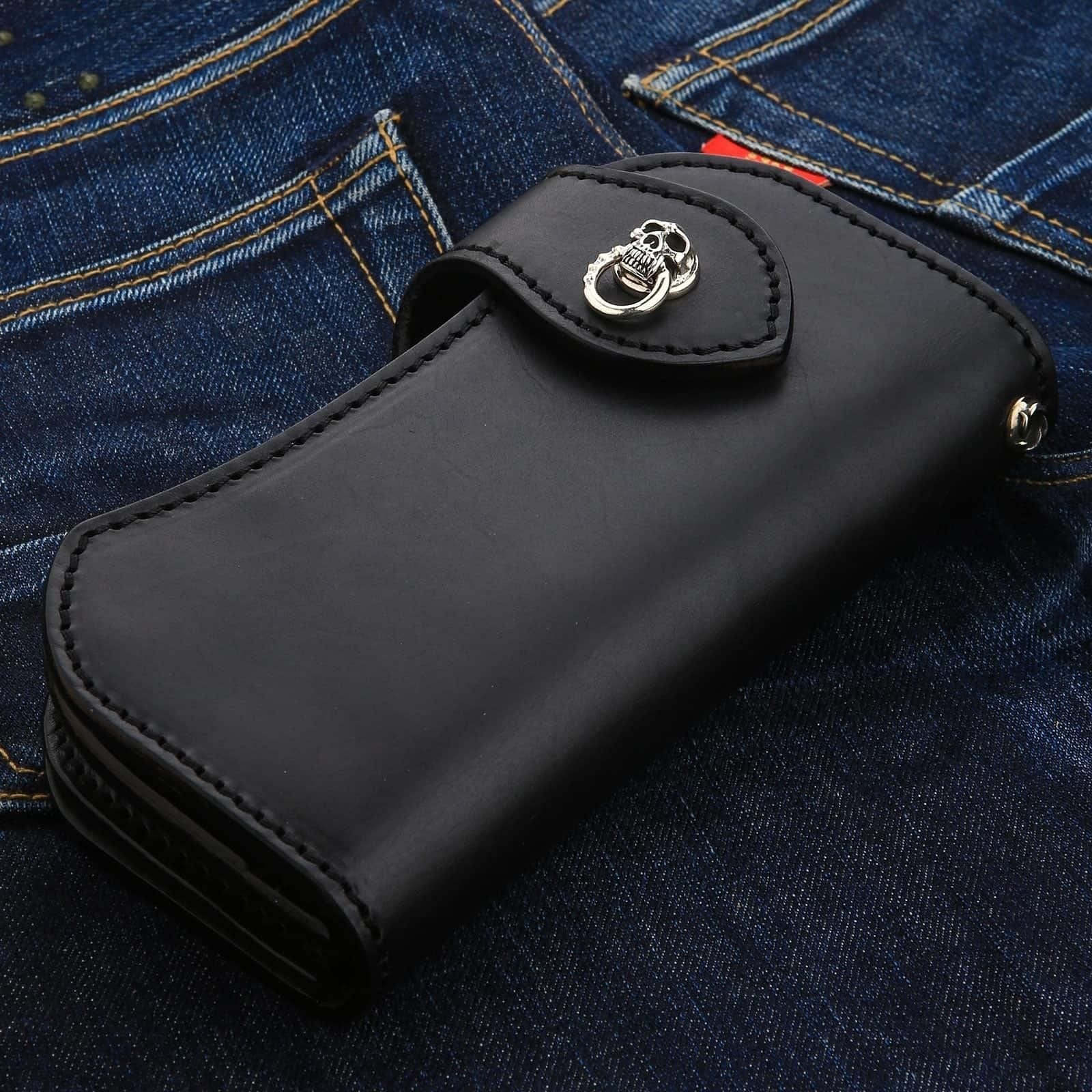 Q: What defines a leather biker wallet? A: A leather biker wallet, often called a 'long wallet' or 'trucker wallet,' is a classic accessory prized for its durability and security. It's typically made from tough cowhide, features a long design to hold bills flat, and includes a grommet for attaching a wallet chain to keep it safe on a ride.