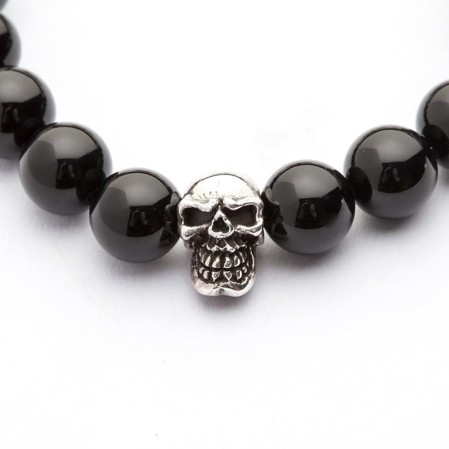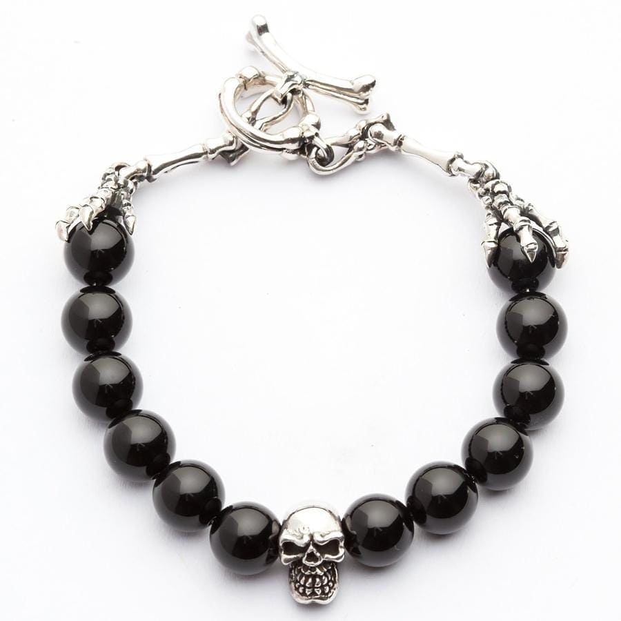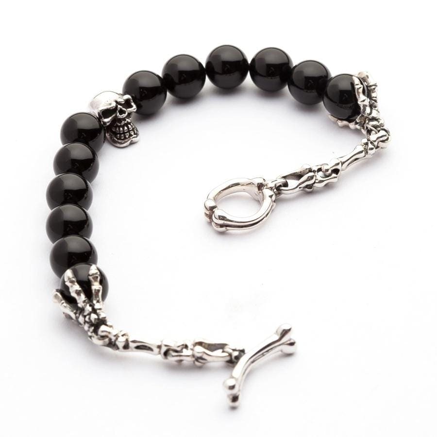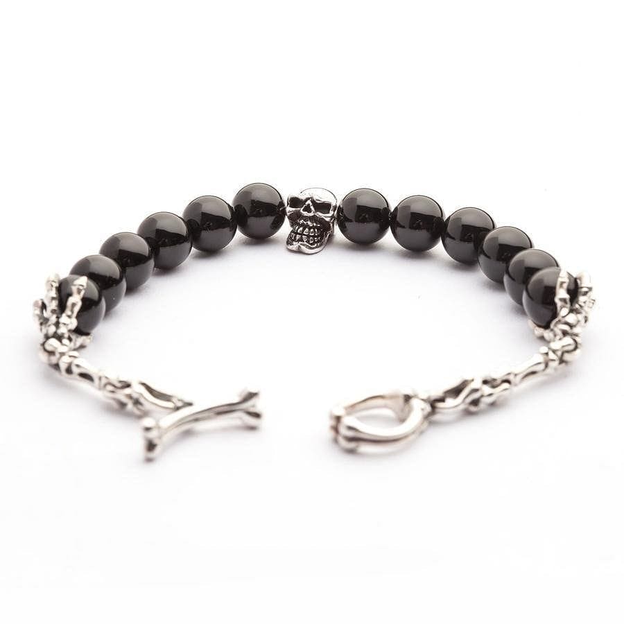 Men's Black Onyx Skull Bracelet with Skeleton Hand Clasp