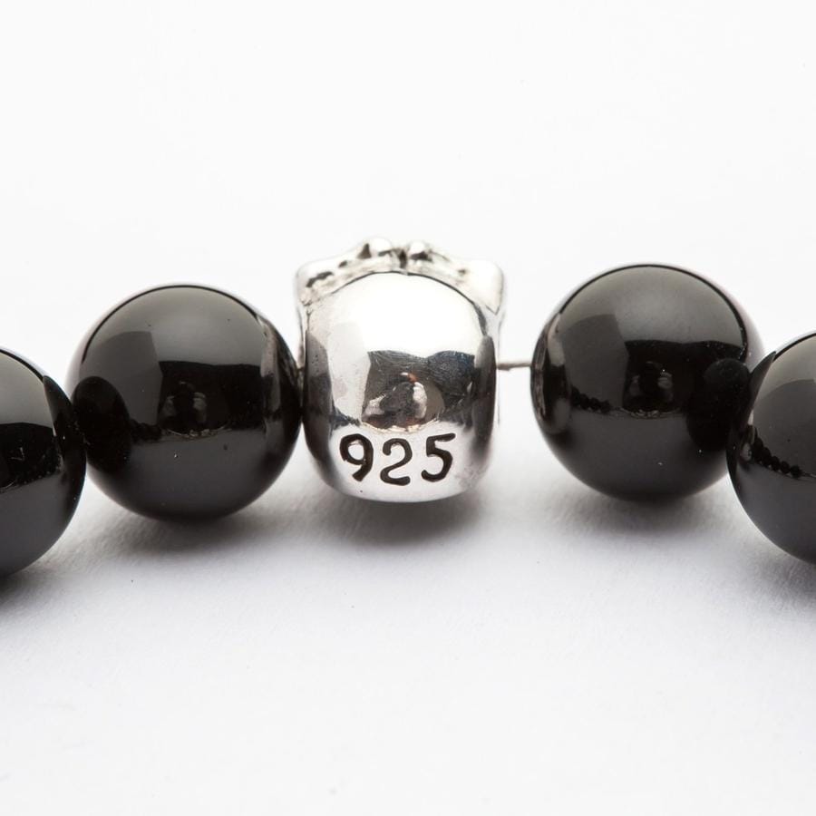 Embrace a bold, edgy look with this striking Men's Black Onyx Skull Bracelet. Expertly crafted from solid 925 sterling silver, this piece isn't just an accessory; it's a powerful statement piece. The bracelet features a row of genuine, deep black onyx beads, anchored by a detailed skull centerpiece. This design is perfect for those who embody a gothic or biker aesthetic, offering a blend of macabre style and fine craftsmanship.