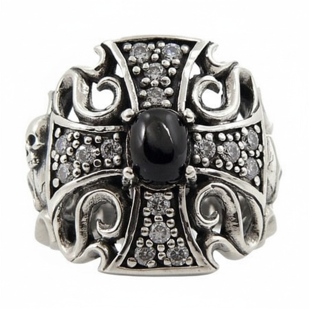 Ornate Sterling Silver Black Star Gothic Cross Ring