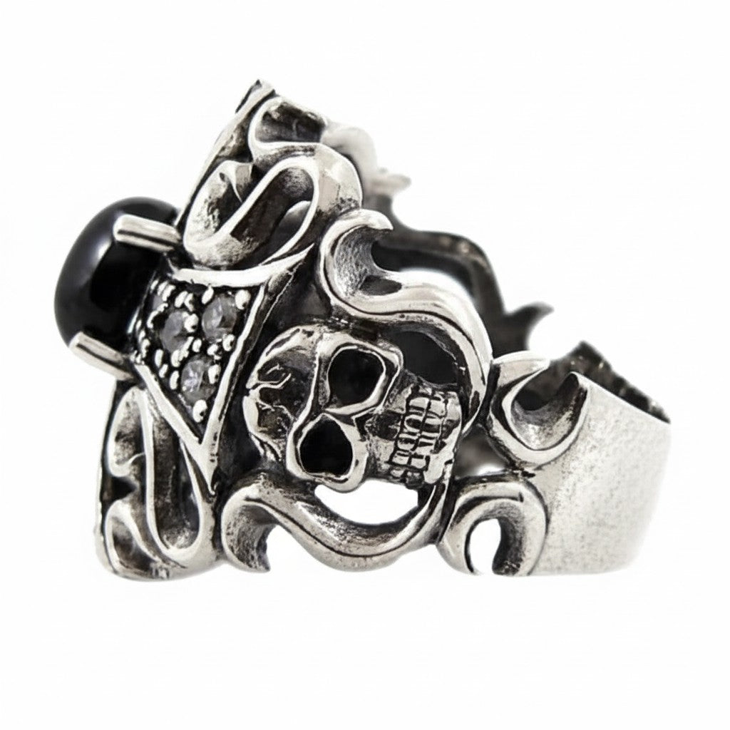 4. Is the skull obvious in the design? The skull is an intricate detail cleverly woven into the filigree on the side of the ring. It is a subtle yet powerful element that you and those who look closely will appreciate, adding a hidden layer of meaning to the piece.