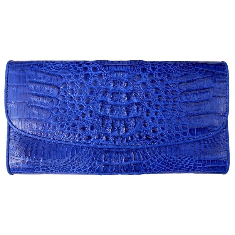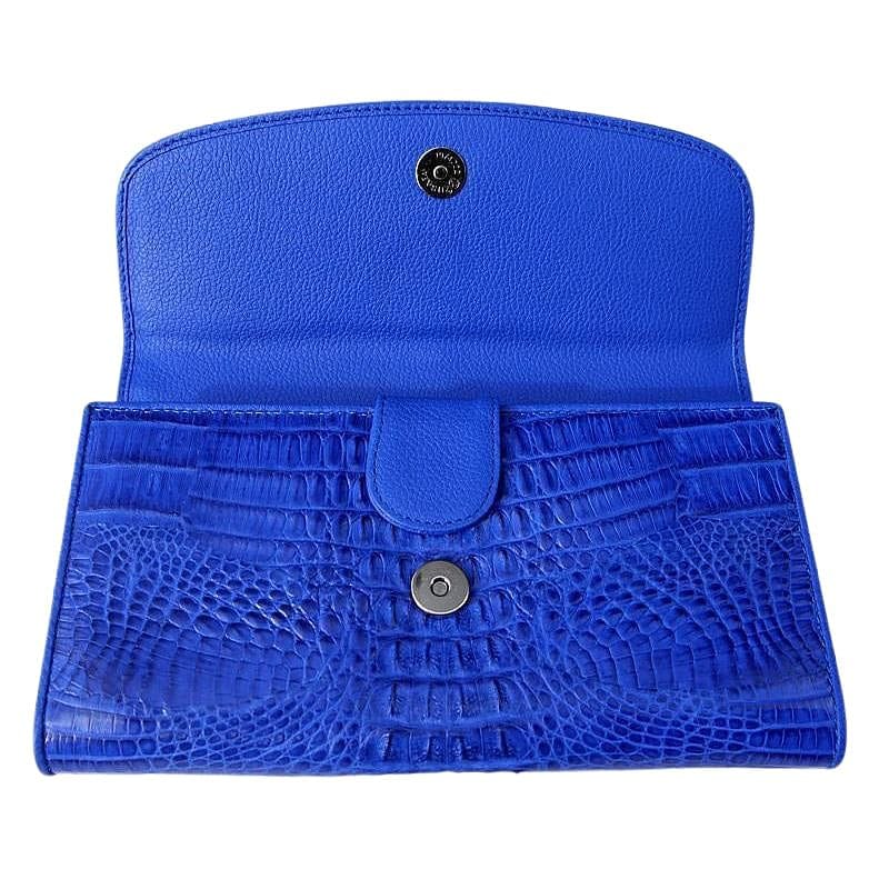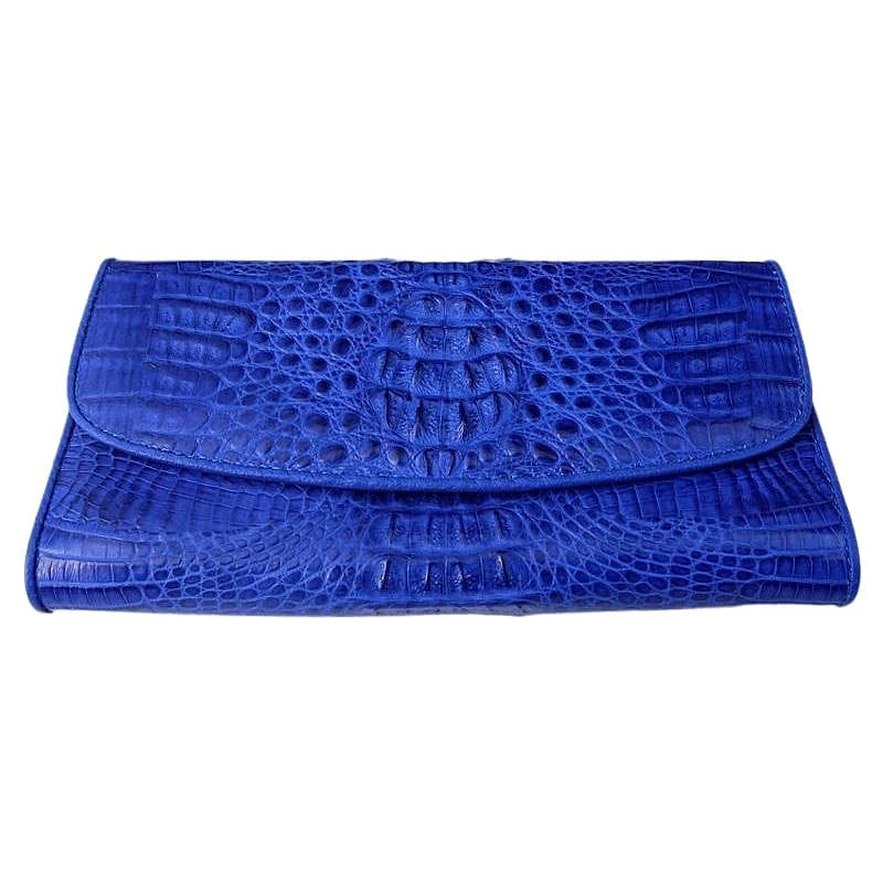 Make a stunning statement with this vibrant Blue Crocodile Leather Wallet. This isn't just a women's purse; it's a piece of luxury, designed for the woman who values prestige and bold, sophisticated style. Handcrafted from genuine crocodilian skin, this exotic leather wallet combines unmatched durability with an electrifying color that demands attention.