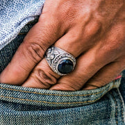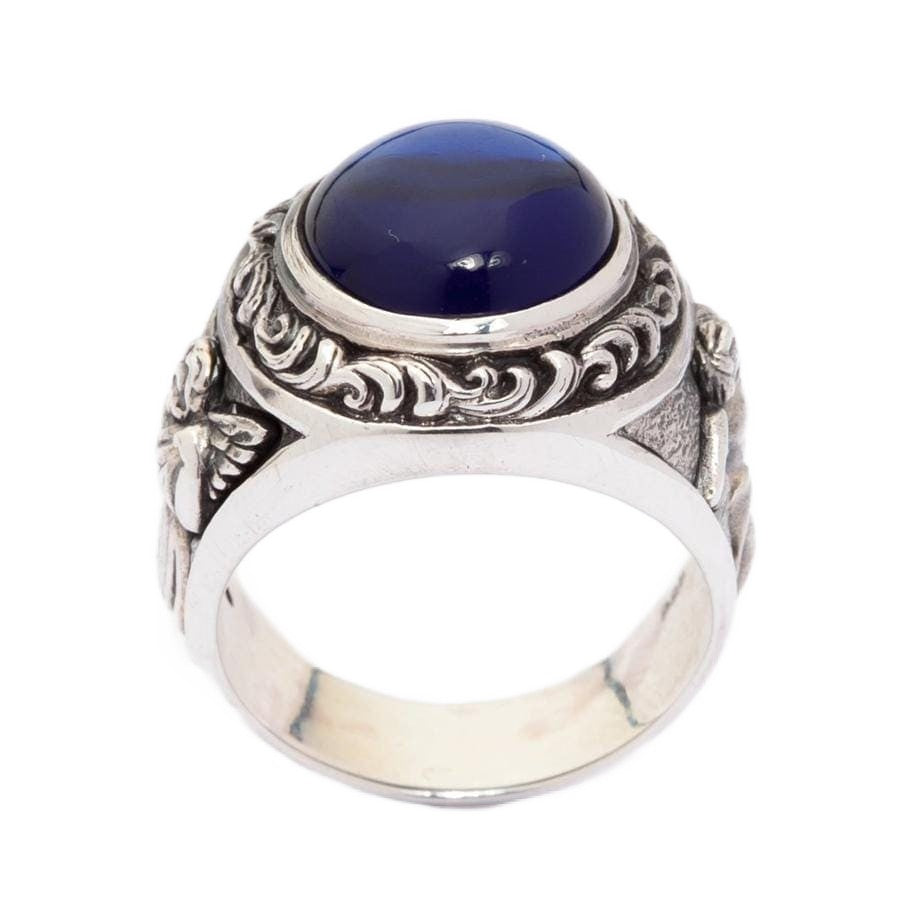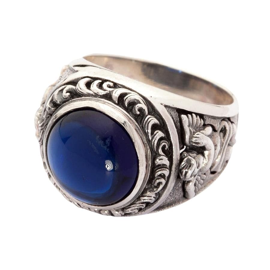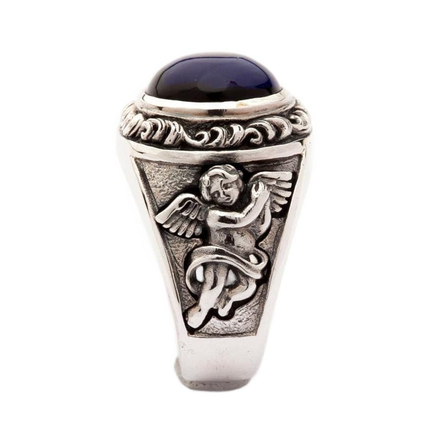 Discover the perfect union of romantic symbolism and masculine elegance with our Blue Stone Cupid Ring. Meticulously crafted for those who appreciate fine detail, this piece is more than just an accessory; it is a wearable work of art. Made from high-grade 925 sterling silver, the ring draws profound inspiration from Roman mythology, featuring the iconic God of love to symbolize affection and desire in a bold, tangible form.