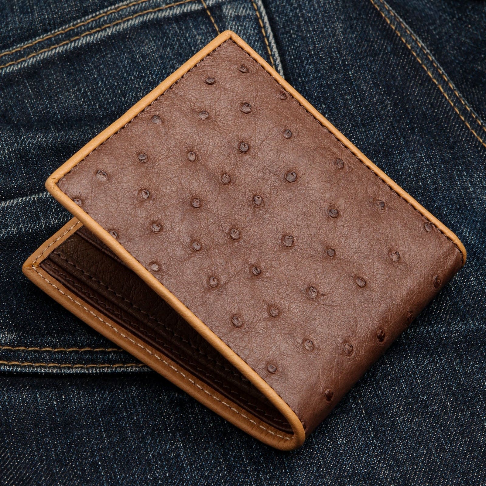 Elevate your everyday carry with the unparalleled luxury of our Brown Ostrich Wallet. This is more than just a place to hold your cards; it's a sophisticated statement of style, crafted from one of the world's most sought-after exotic leathers. For the man who appreciates superior quality and distinctive design, this wallet is the perfect fusion of durability and elegance.