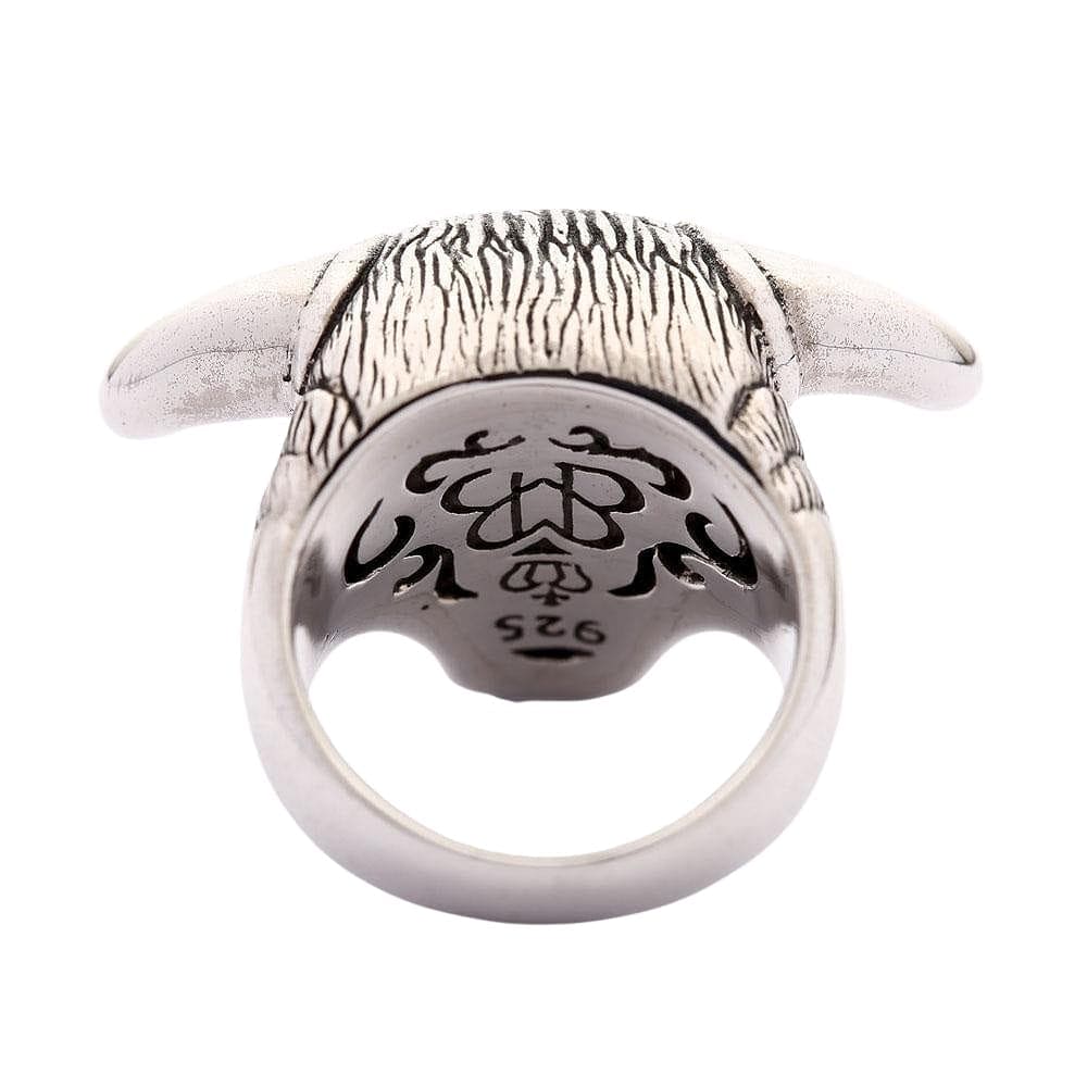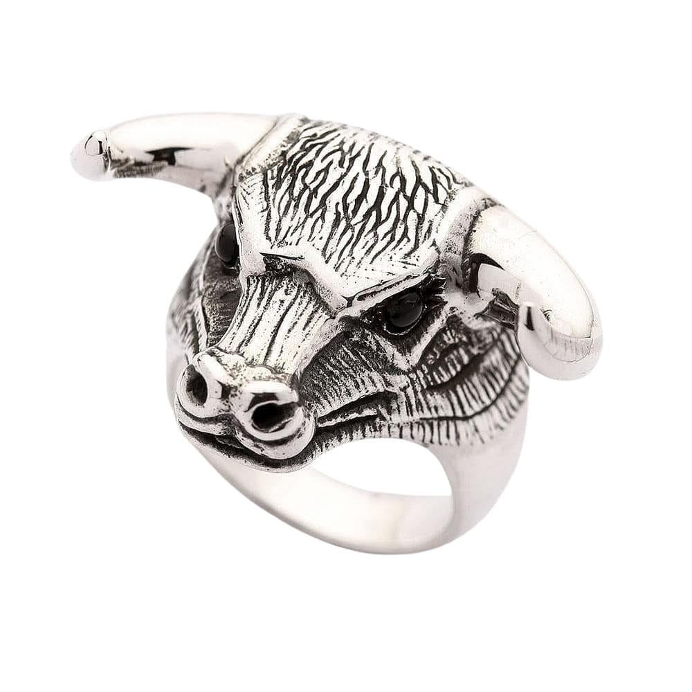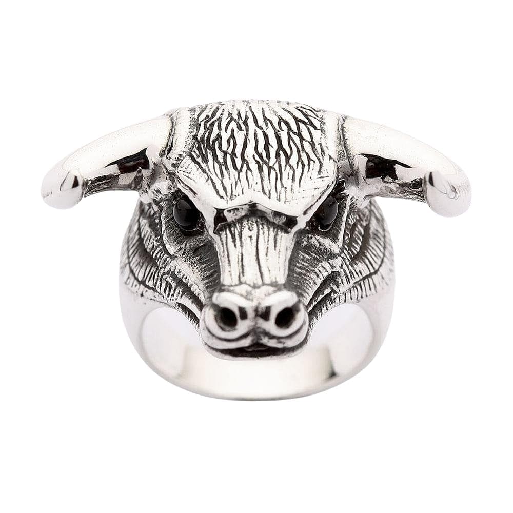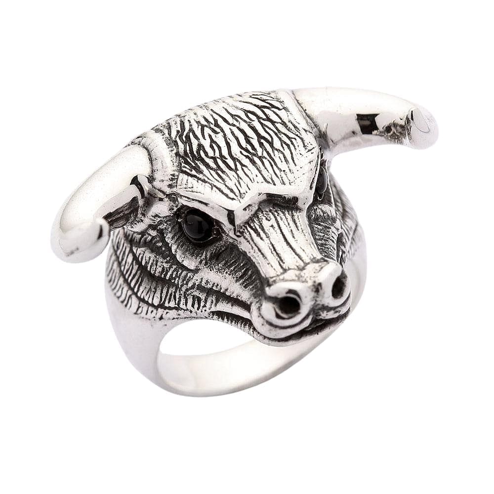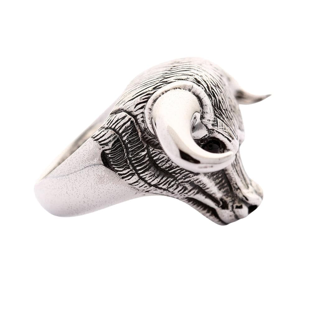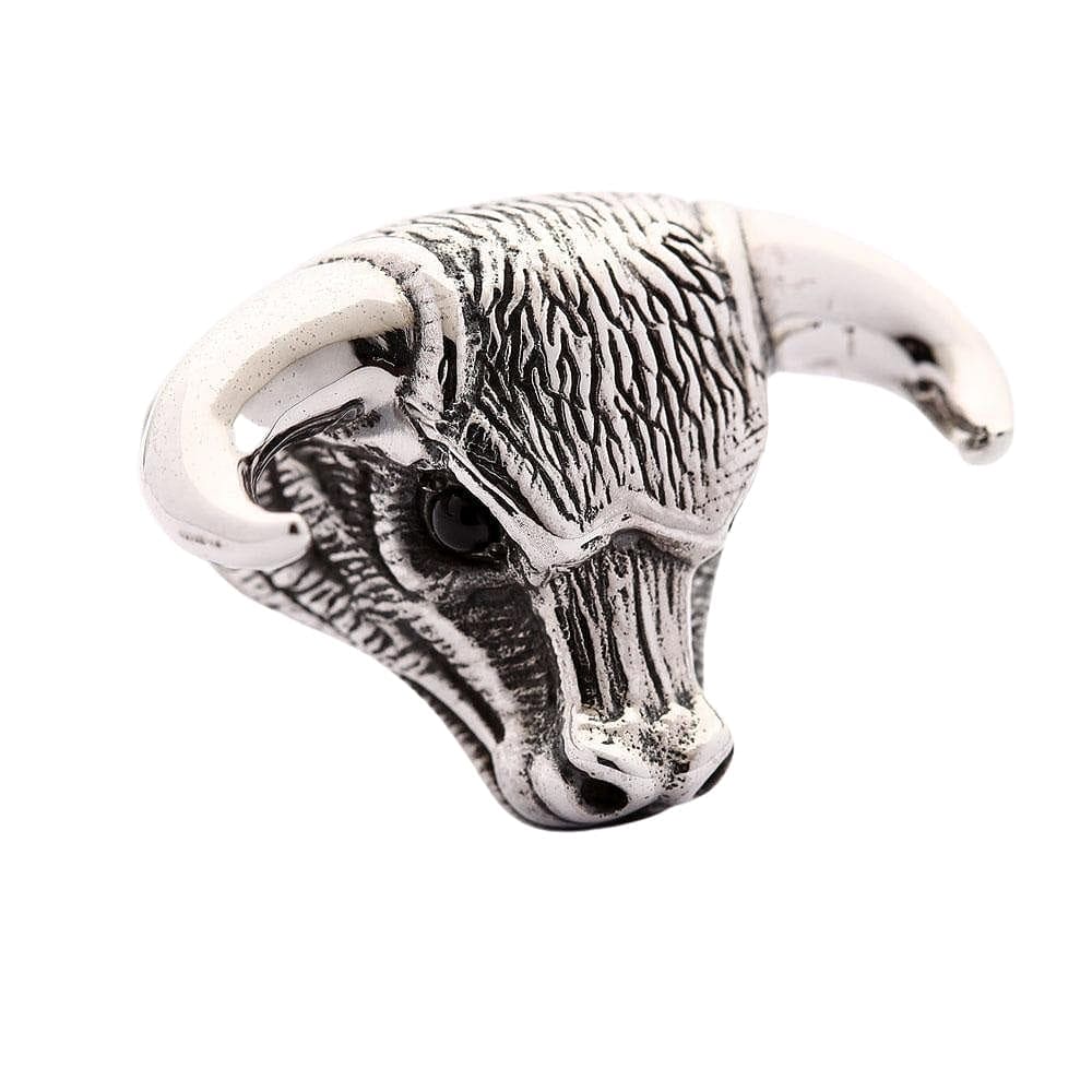 Bull Head Ring – 925 Sterling Silver Taurus Ring with Onyx Eyes
