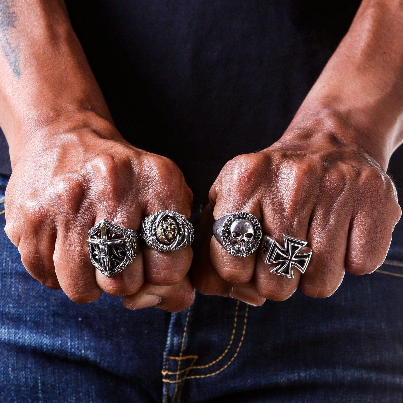 📏 Bold Statement Size: With a prominent face measuring ½" x ⅞", this ring is designed to make a bold, uncompromising statement that is both seen and felt.