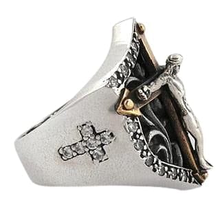 The shanks of this solid sterling silver ring continue the devotional theme, each featuring a small, sparkling cross. Every element is handcrafted by master artisans, from the polishing of the precious metals to the setting of each individual stone. It’s a substantial, high-quality piece designed to be a cherished testament to your faith. Discover more powerful pieces in our Christian Rings collection.