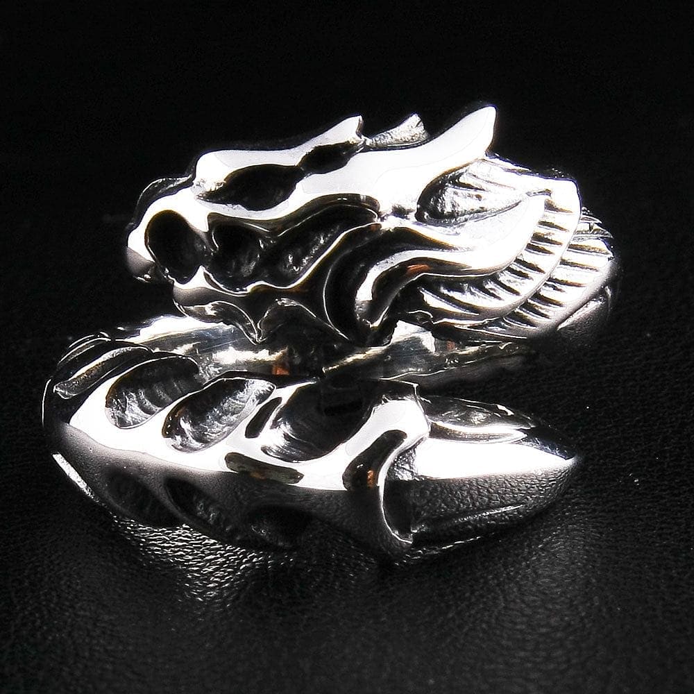 A: Dragons represent power, protection, and wisdom. This dragon armor ring combines those meanings with gothic warrior style.
