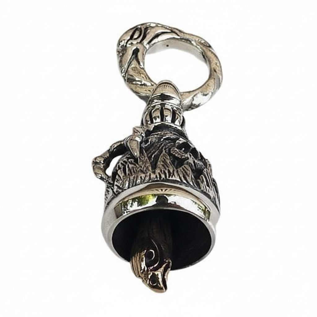 Answer the call of freedom with this powerful Eagle Guardian Bell. This is more than just an impressive piece of silver; it's a legendary talisman of protection, a sacred tradition in biker culture designed to keep you safe on the open road. Featuring a powerful eagle motif inspired by Native American art, this bell is an emblem of strength, spiritual vision, and freedom.