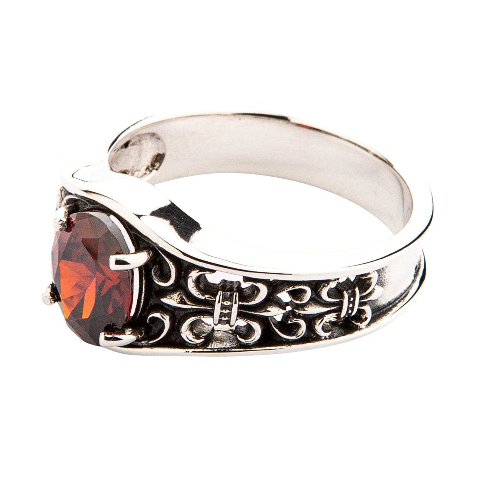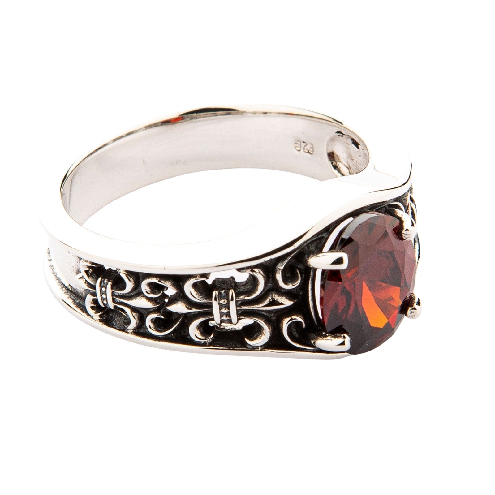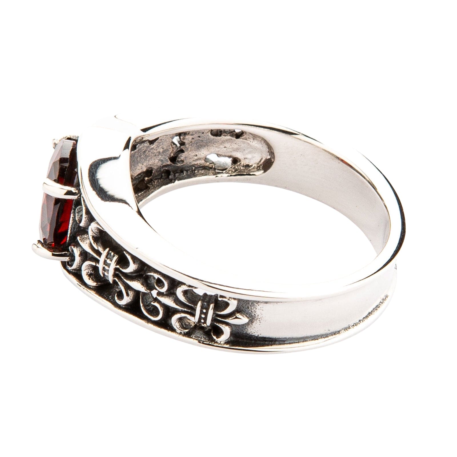 Sterling Silver Gothic Fleur De Lis Garnet Ring