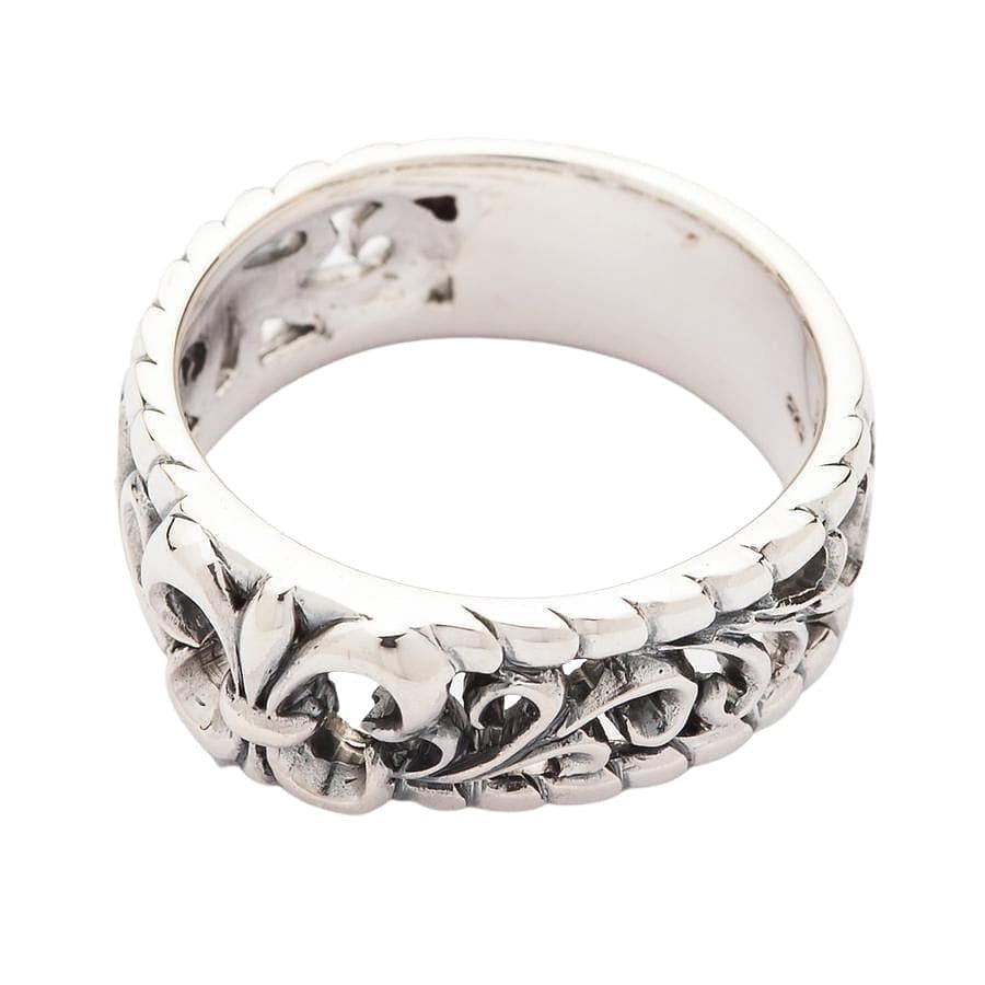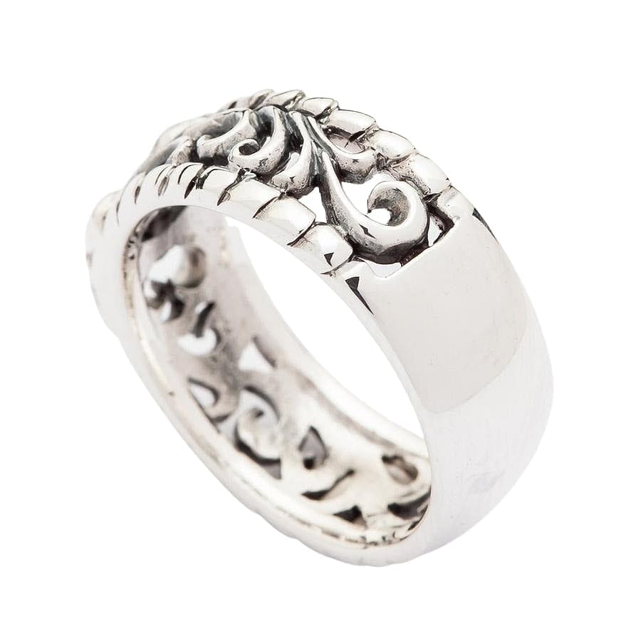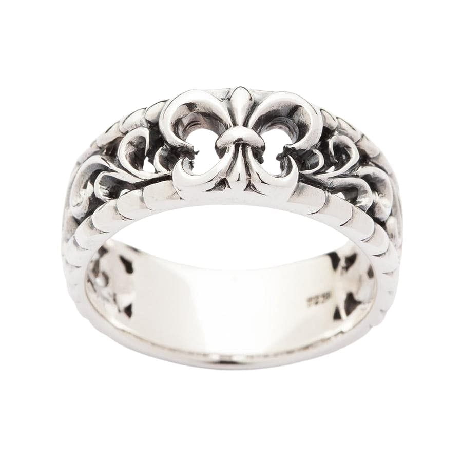 Wrap your finger in a masterpiece of history and style with our Fleur De Lis silver band ring. This isn't just a ring; it's a continuous loop of art. Expertly crafted from solid 925 sterling silver, this wide silver ring perfectly balances the intricate beauty of medieval style with the rugged durability expected of modern biker jewelry. It is an ideal choice for those who appreciate a sophisticated, lower-profile ring that still commands attention through its detail.