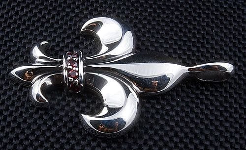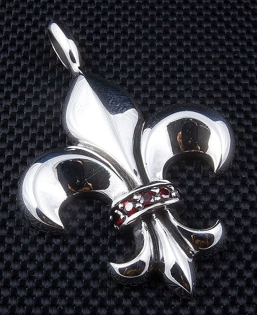 Sterling Silver & Garnet Fleur De Lis Pendant