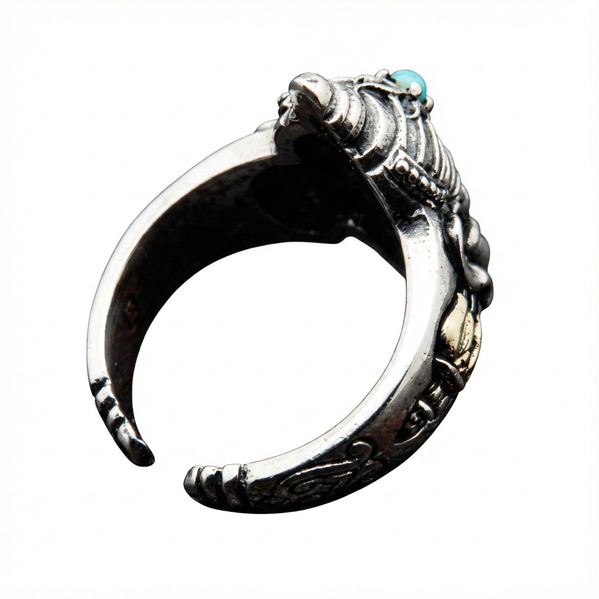 Genuine Turquoise Gemstone: Features a natural turquoise stone inlay, adding a splash of color and believed to bring luck and protection.