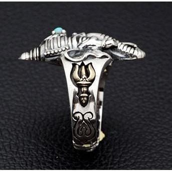 Designed for versatility and comfort, this is an adjustable Hindu deity ring with an open-back design. It can easily be resized to fit US sizes 4.5 through 8, making it an ideal spiritual protection ring for both men and women, or a thoughtful gift where ring size might be unsure. The combination of the cool silver and the bright blue turquoise creates a harmonious balance of energy and style.