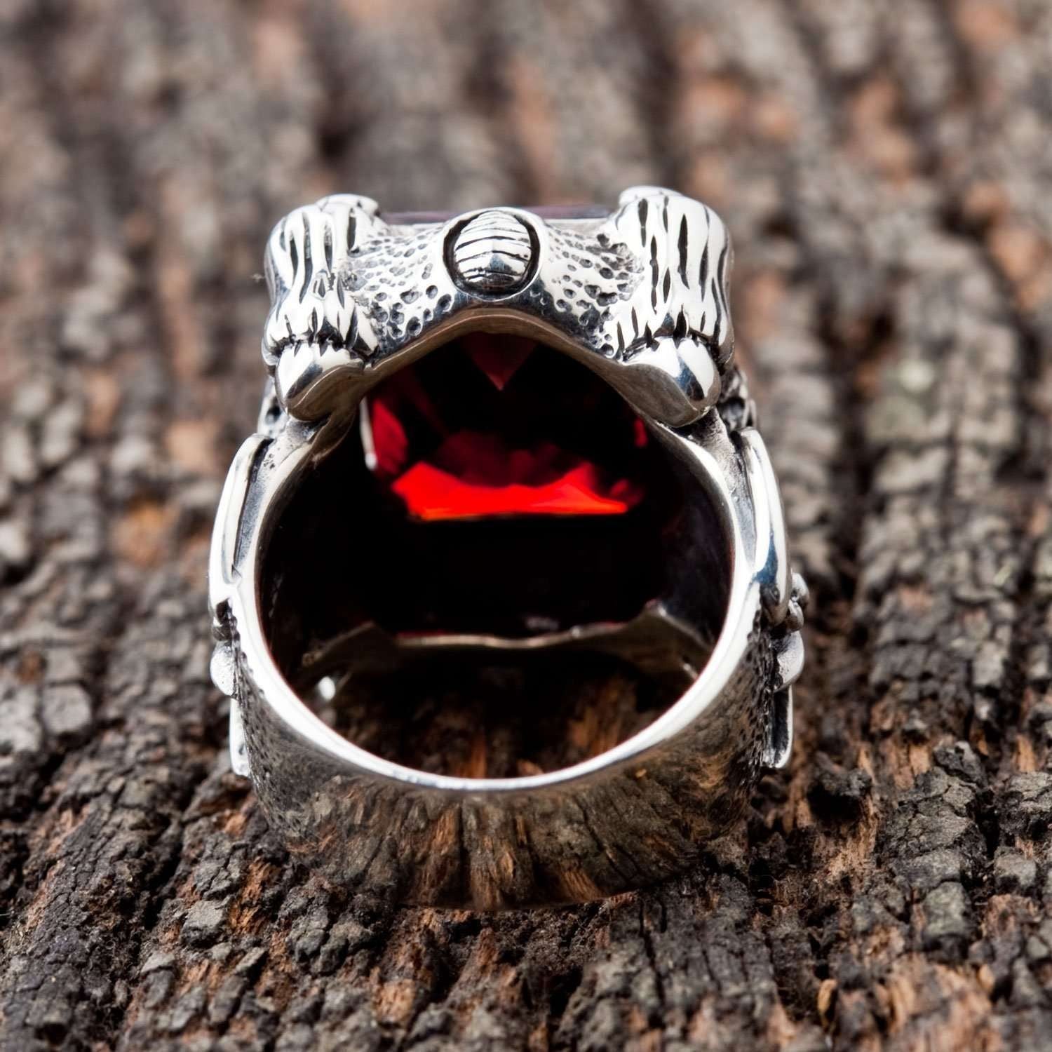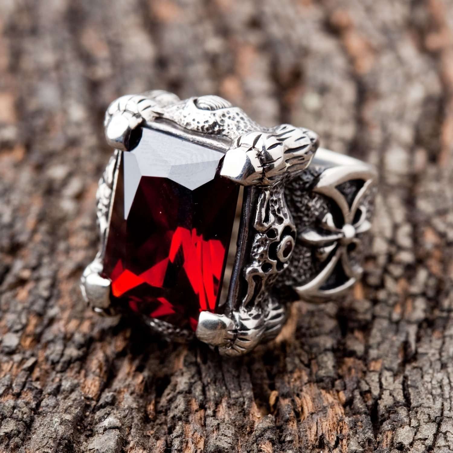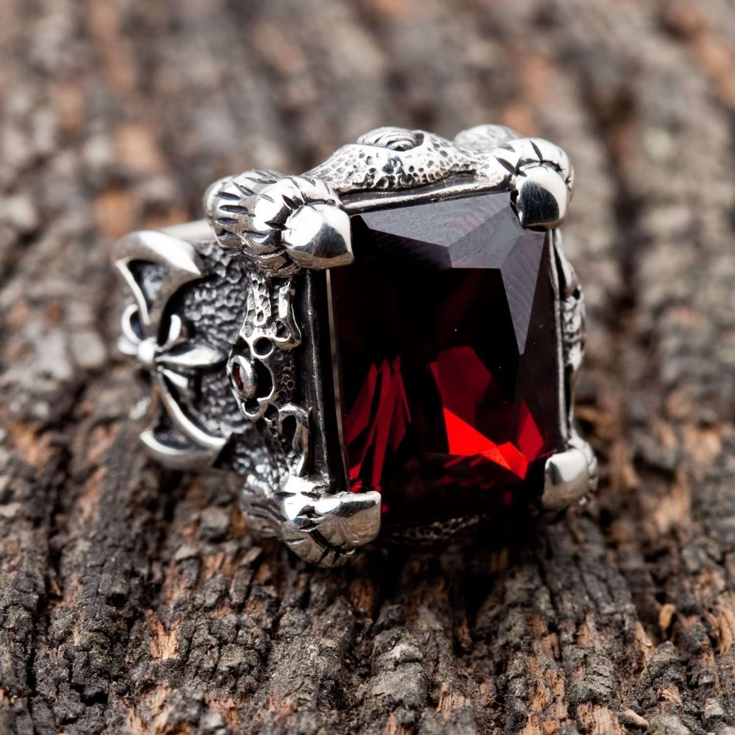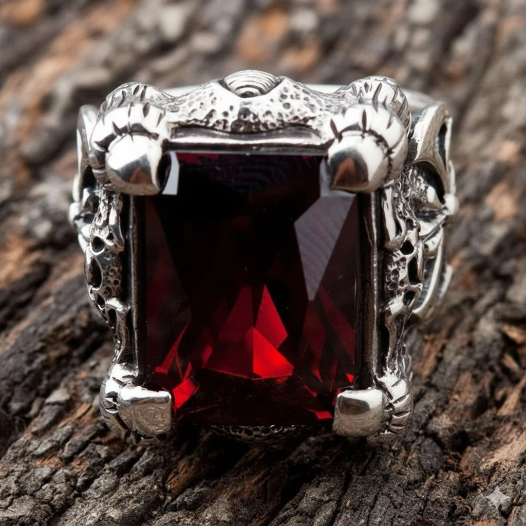 Garnet Dragon Claw Ring – Sterling Silver Men’s Gothic Ring