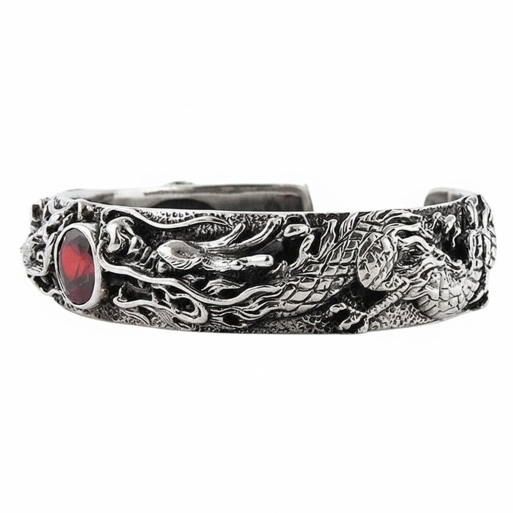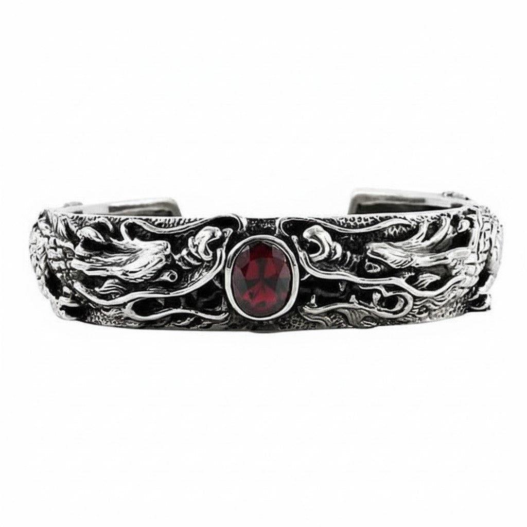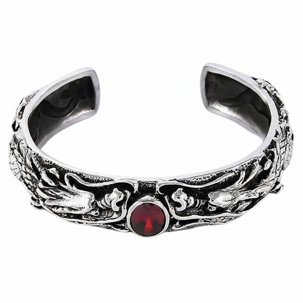 Garnet Dragon Cuff – Sterling Silver Biker Bracelet