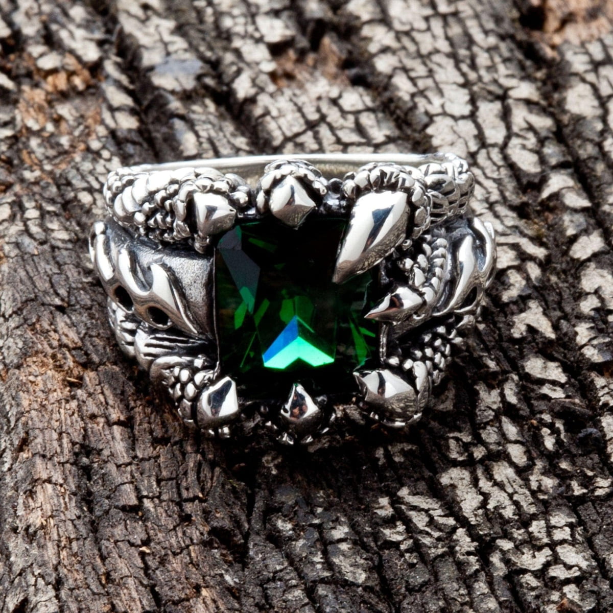 We believe a ring this powerful deserves to be forged from real, enduring materials. The entire piece, from the tip of each claw to the solid band, is crafted from 100% solid .925 sterling silver. This commitment to pure, high-grade silver gives the ring its brilliant shine and the strength to last a lifetime. The centerpiece is a high-quality, emerald-green CZ gemstone, chosen for its flawless clarity and deep, vibrant color that perfectly contrasts with the cool silver.