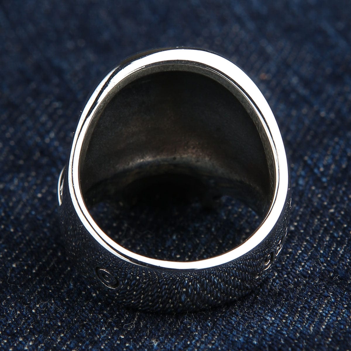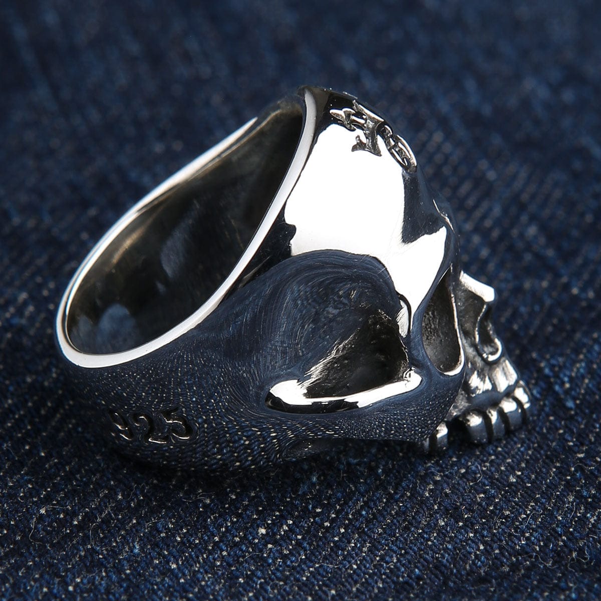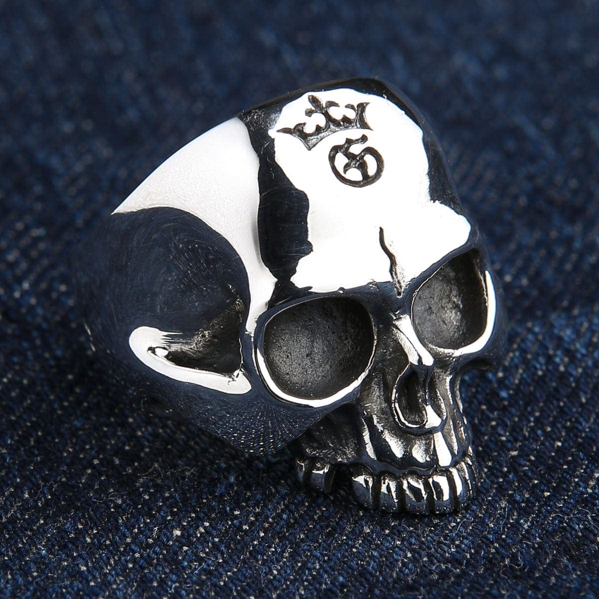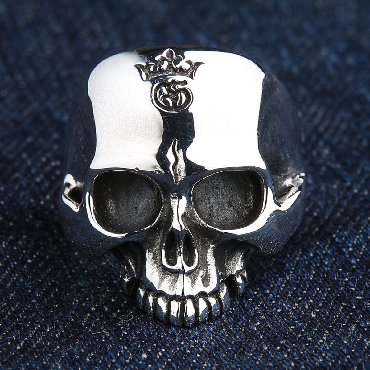 If you collect gothic jewelry and care about hand-engraved depth — look at the crown on this skull. The carving is real — you can trace it with a fingernail. Each ring carries slight artisan shifts. Small proof that someone shaped it by hand, not stamped in bulk.