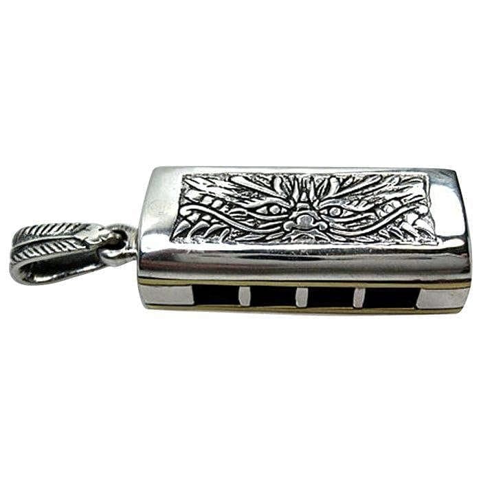 Unite your love for music and intricate art with this extraordinary Japanese mini harmonica pendant. This is no mere charm; it's a fully playable, wearable musical instrument, meticulously handcrafted from solid sterling silver. A true conversation starter, it allows you to carry a melody with you, wrapped in a stunning mythological design that is sure to captivate.