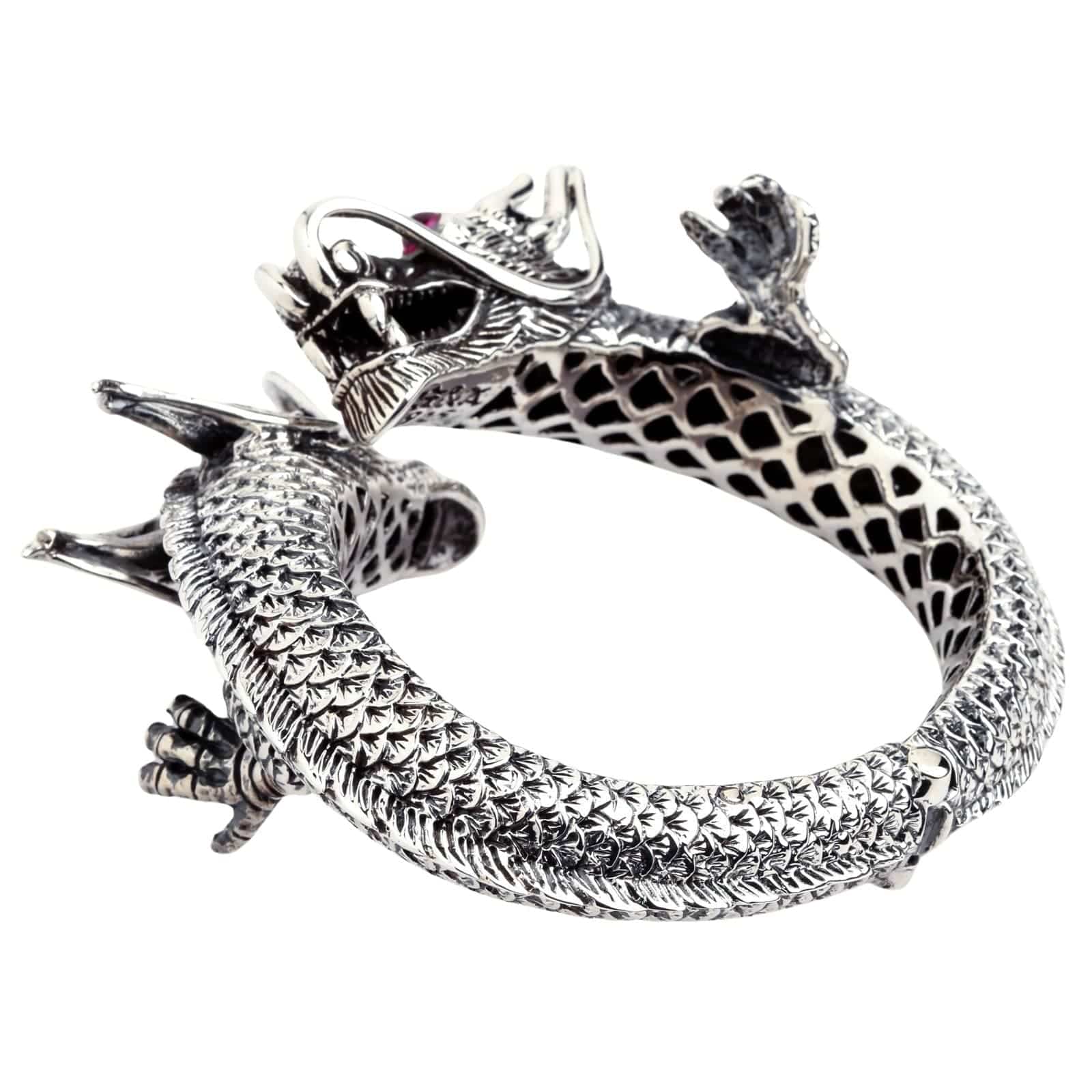 Huge Dragon Cuff Bracelet | Sterling Silver with Ruby Eyes