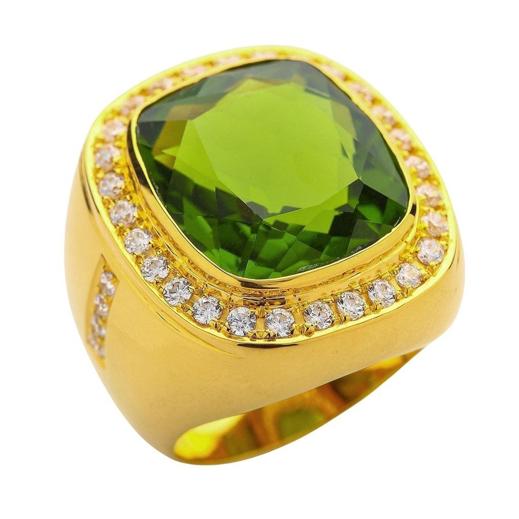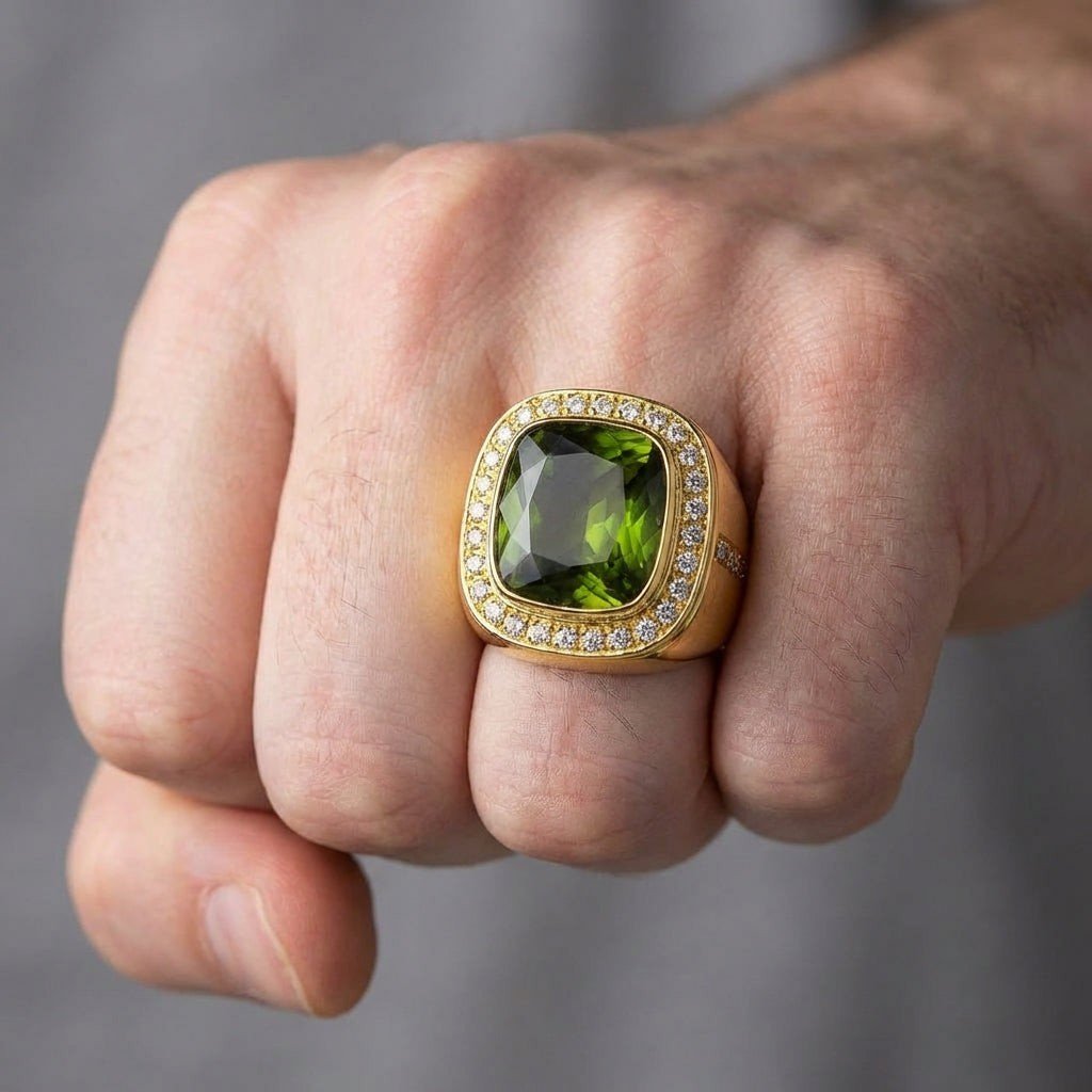 If you want a men’s ring with real color — Most men’s jewelry stays in the silver-black-gold palette. This breaks that pattern with a stone that’s impossible to ignore. The gold setting keeps it in the luxury lane while the peridot does the talking.