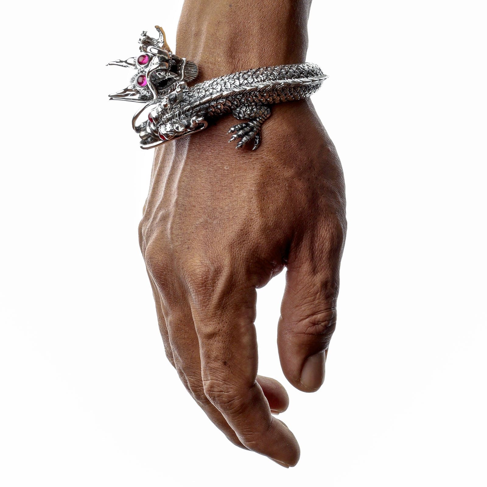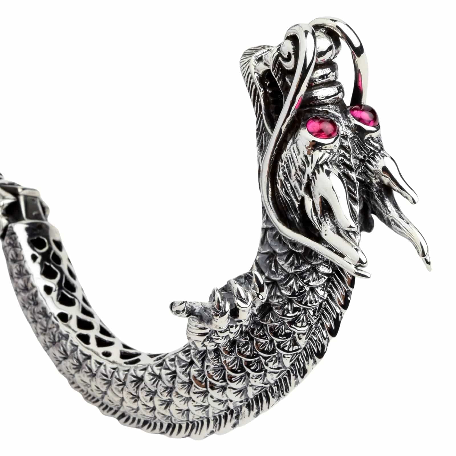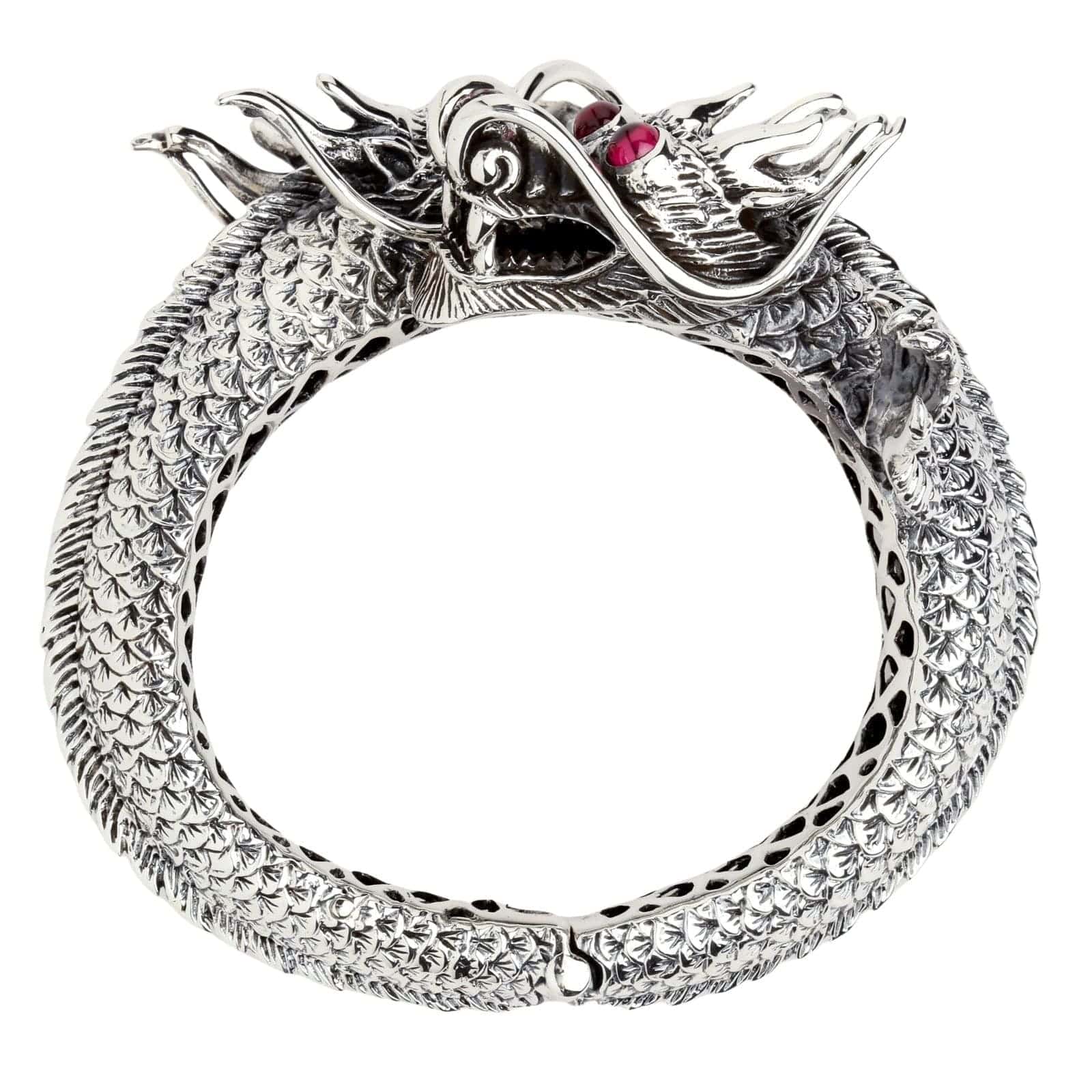 Huge Dragon Cuff Bracelet | Sterling Silver with Ruby Eyes