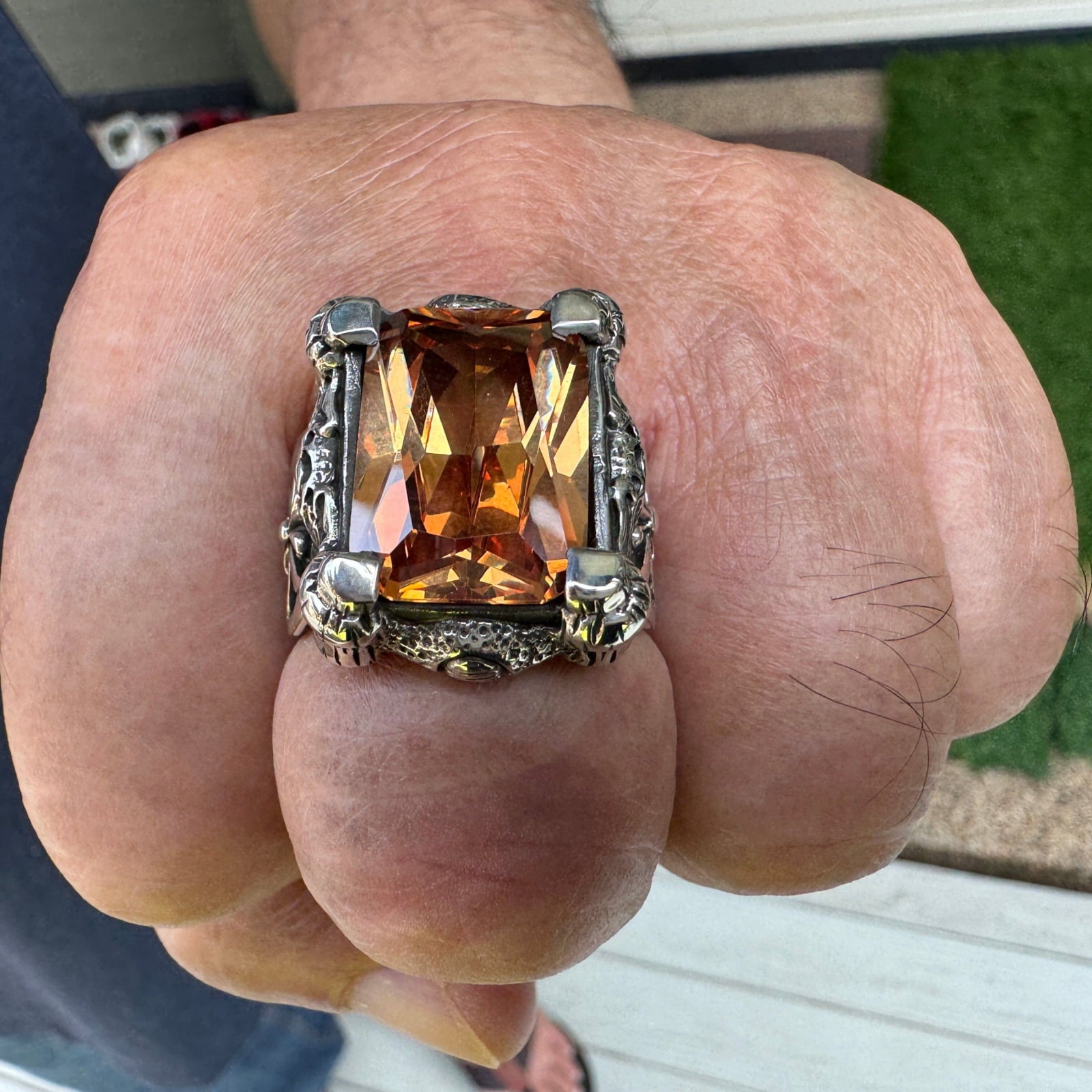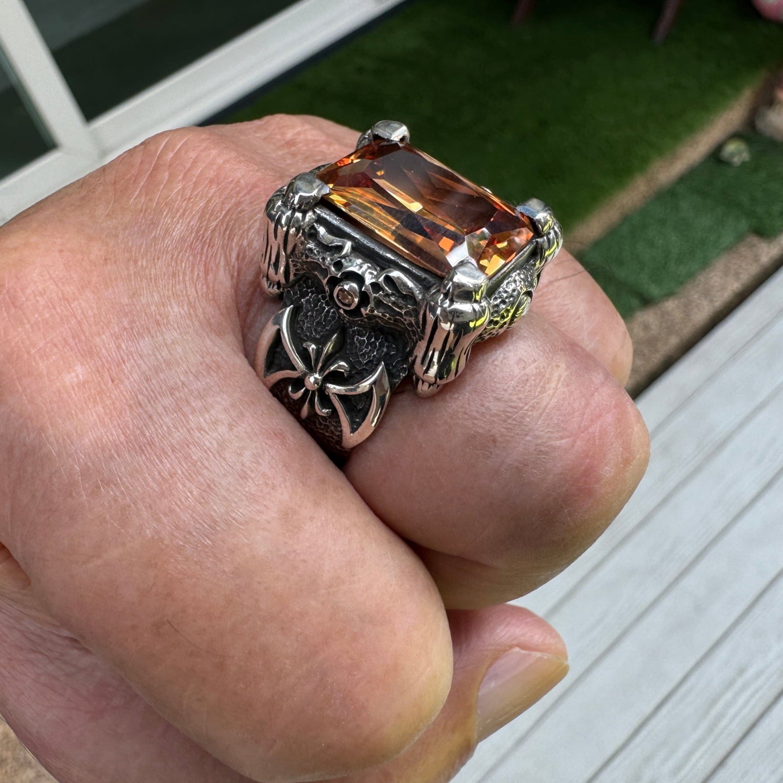Imperial Topaz Dragon Claw Ring – Sterling Silver Gothic Men’s Jewelry