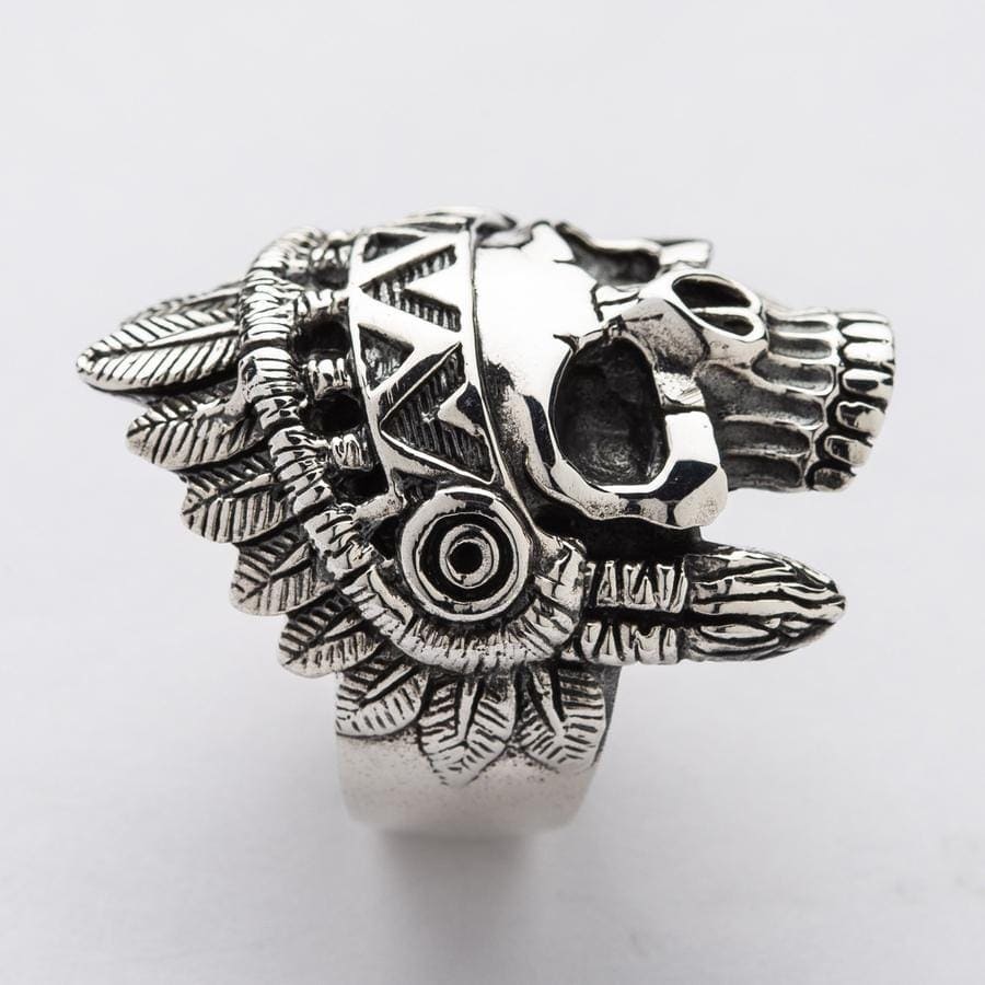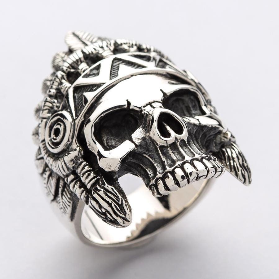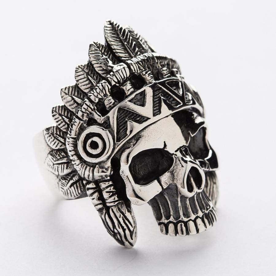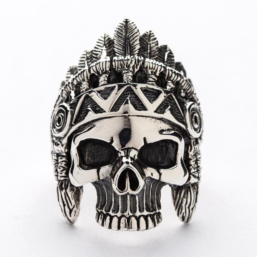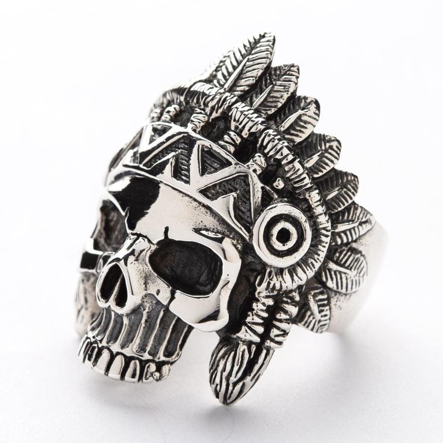Indian Chief Skull Ring | 925 Sterling Silver Biker Jewelry