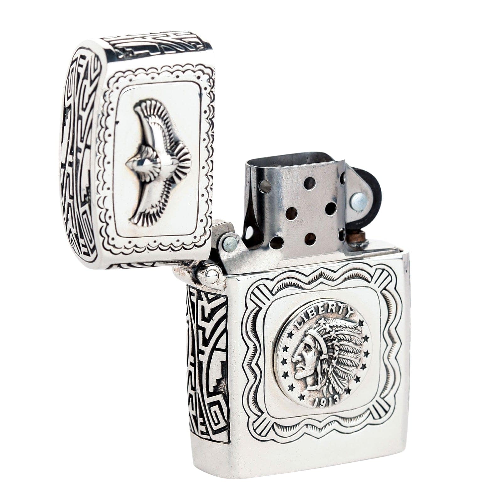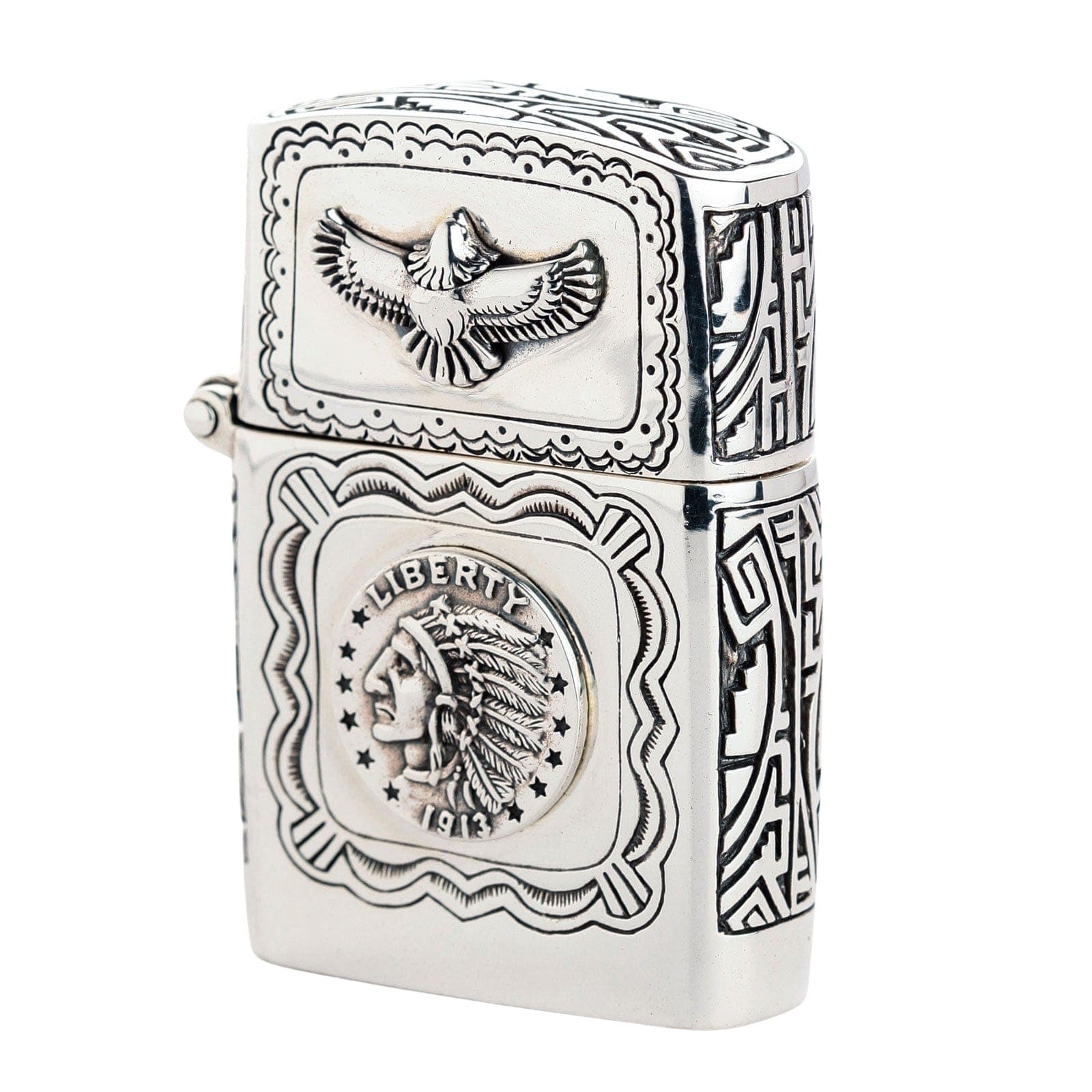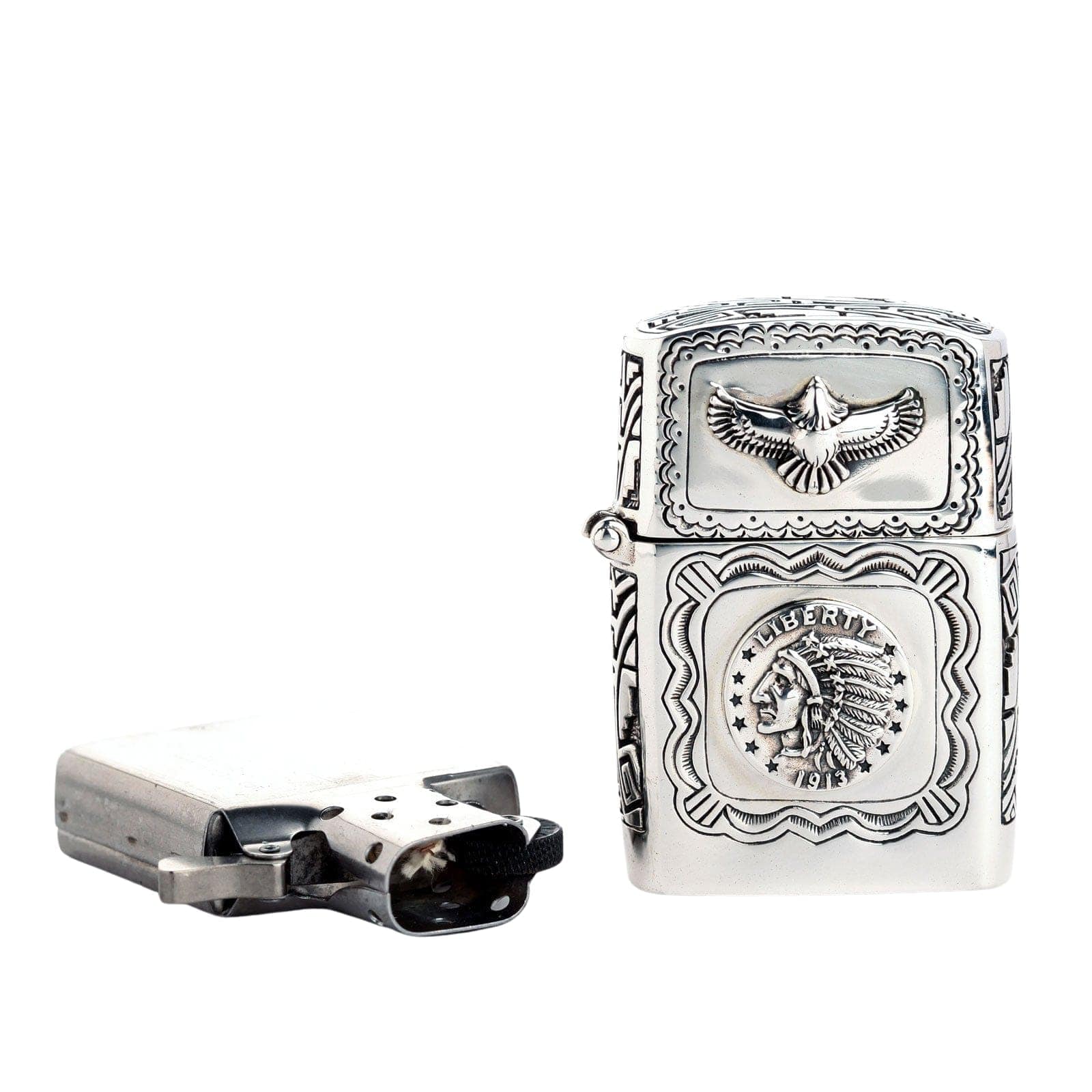 Elevate your everyday carry with a piece of functional art steeped in American heritage. This is no ordinary lighter; it's a heavy, handcrafted Indian head nickel zippo case, designed to encase your standard Zippo insert in pure, solid sterling silver. It’s a tribute to the spirit of the American West and the ideal of liberty, built for the modern-day adventurer, collector, and patriot.