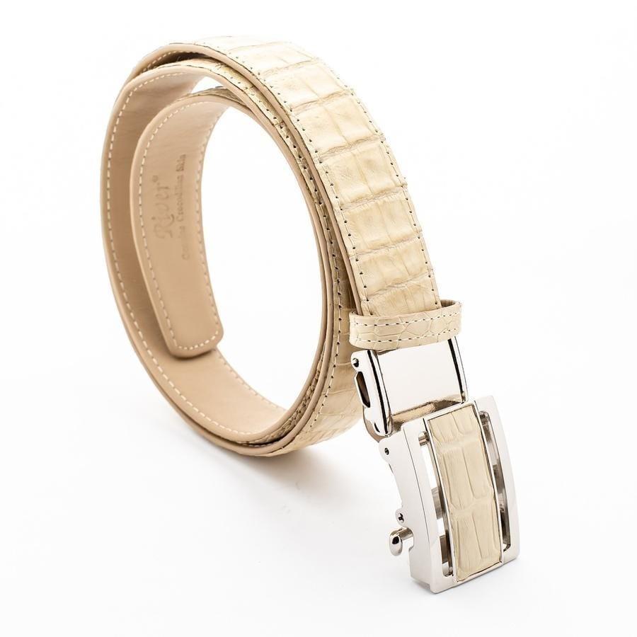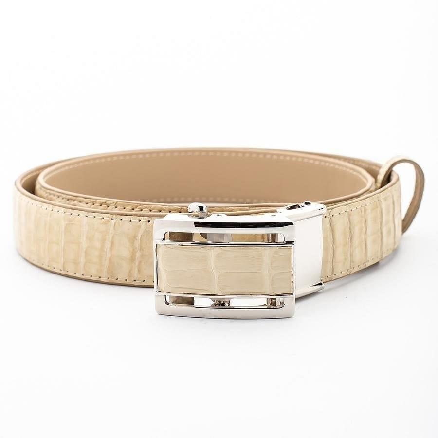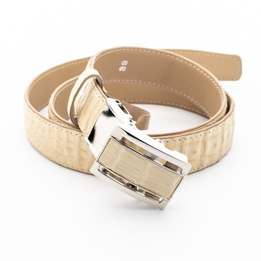 Ivory White Crocodile Belt — Genuine Stomach Skin with Silver Buckle