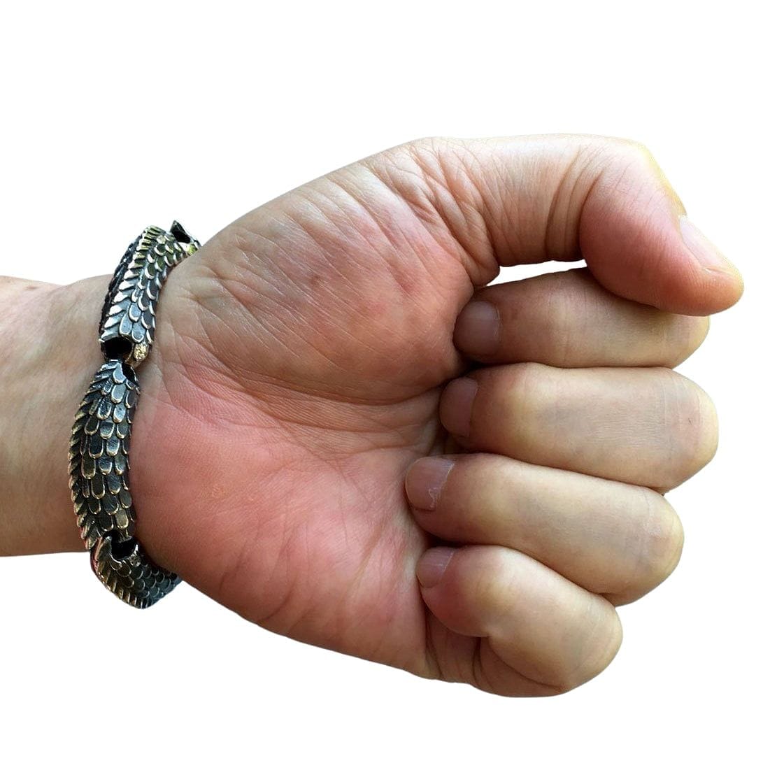 This substantial bracelet is expertly fashioned from pure .925 sterling silver, offering unmatched durability and luxury. With an impressive weight of 105 grams, its quality is immediately evident, making it the perfect accessory for bikers, rockers, or anyone who values unique Gothic-style jewelry.