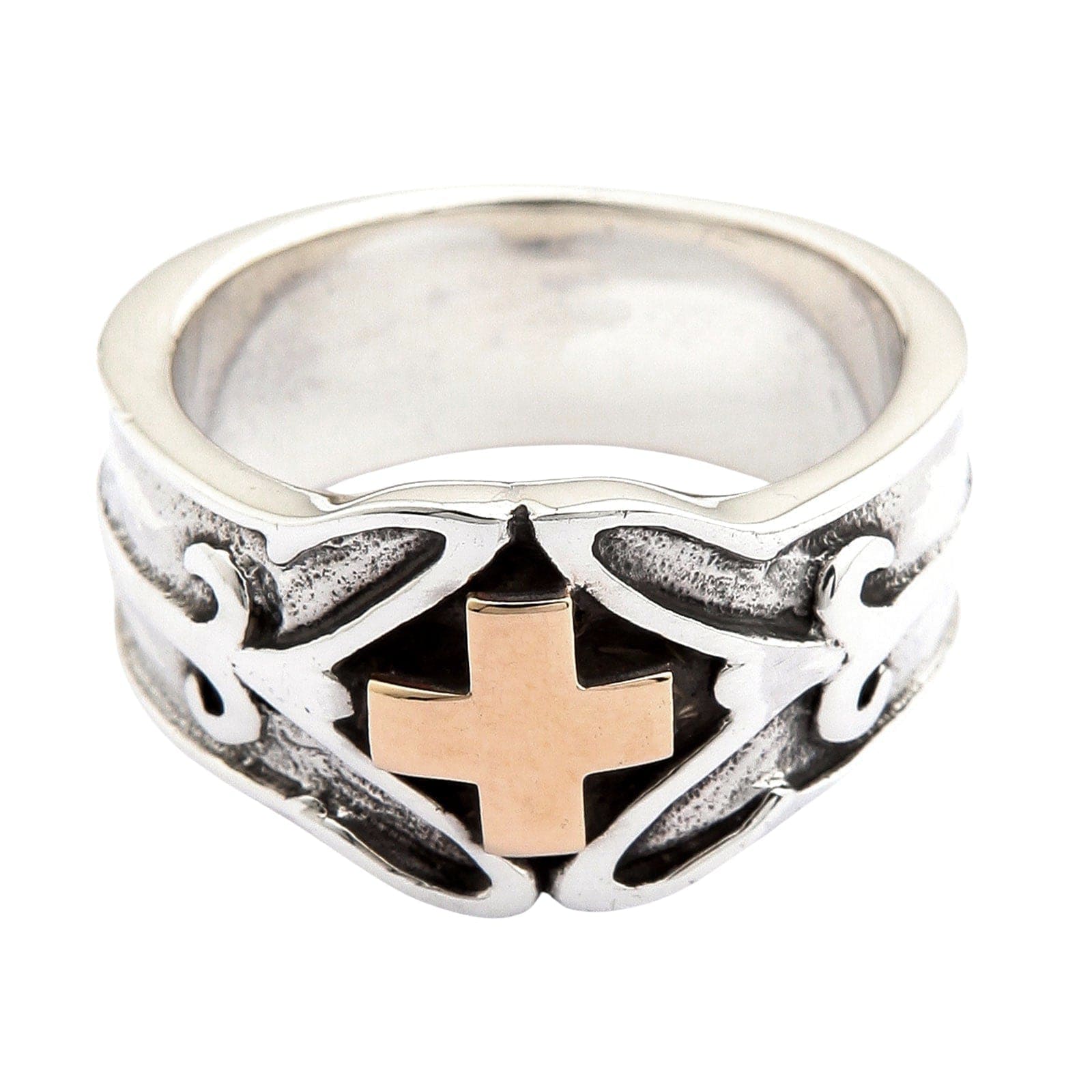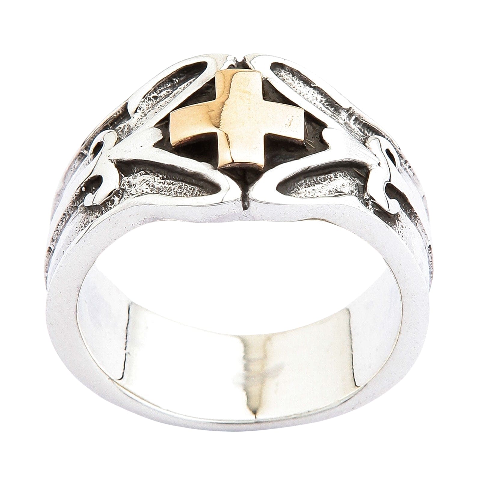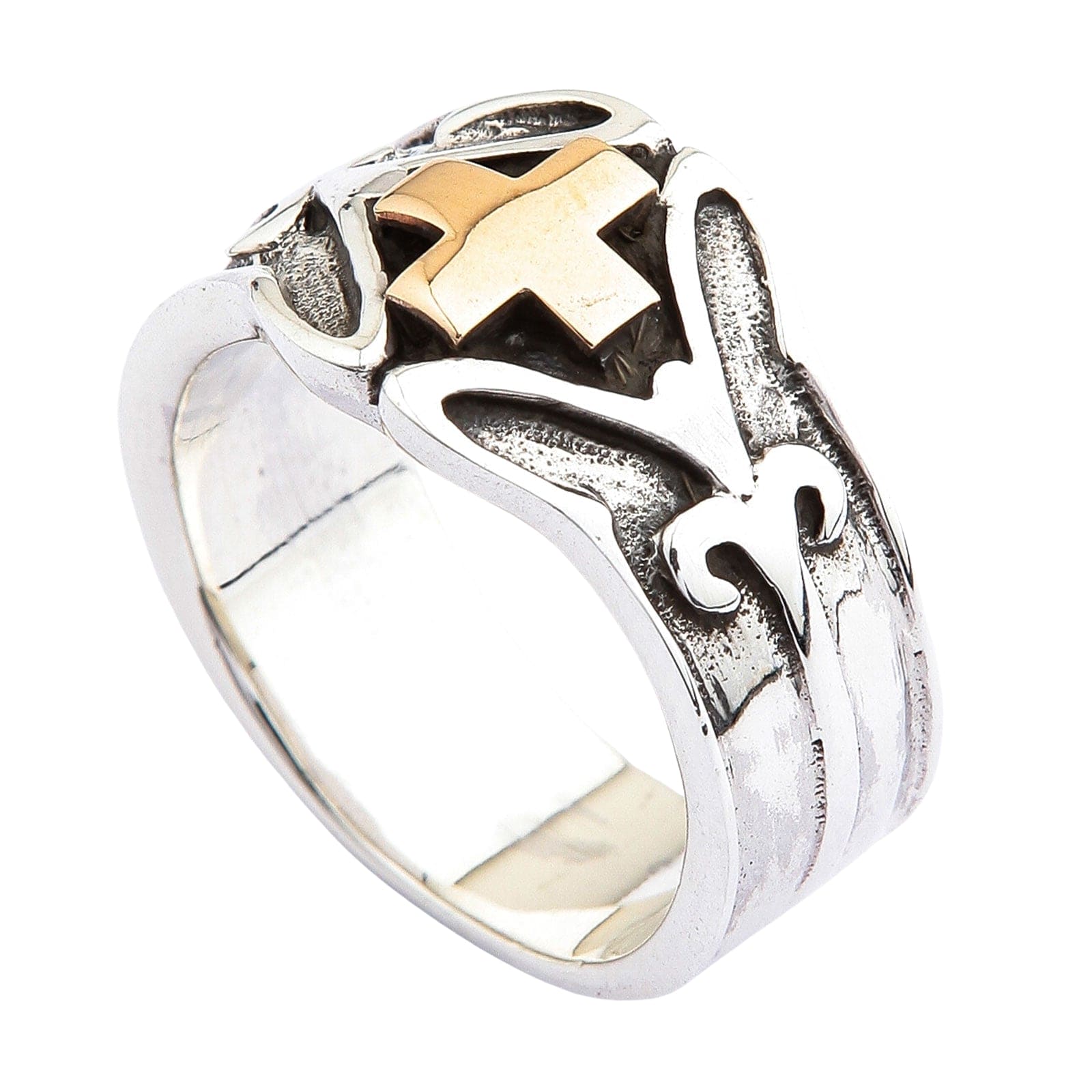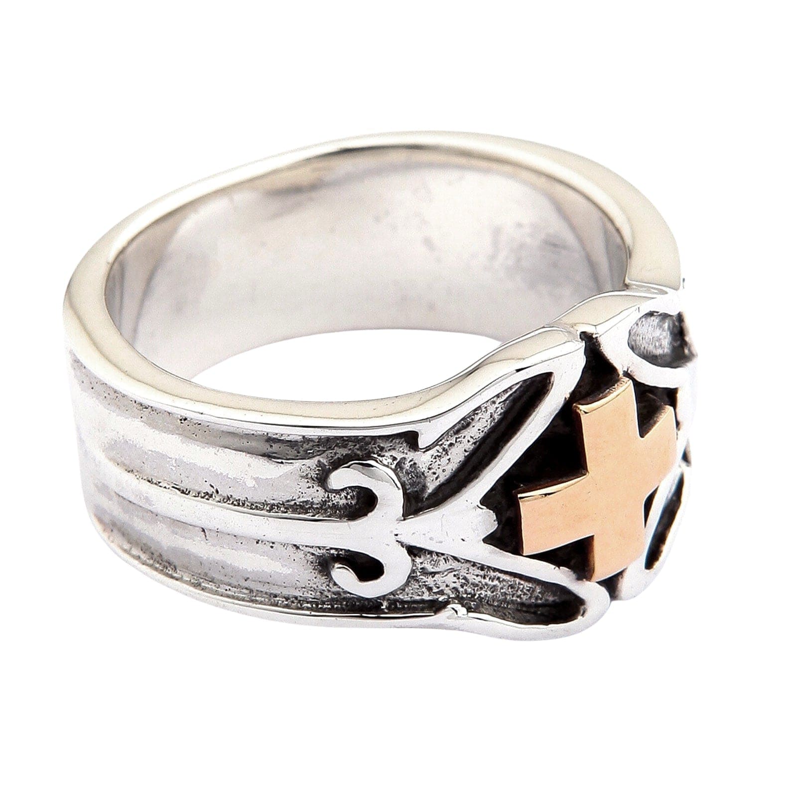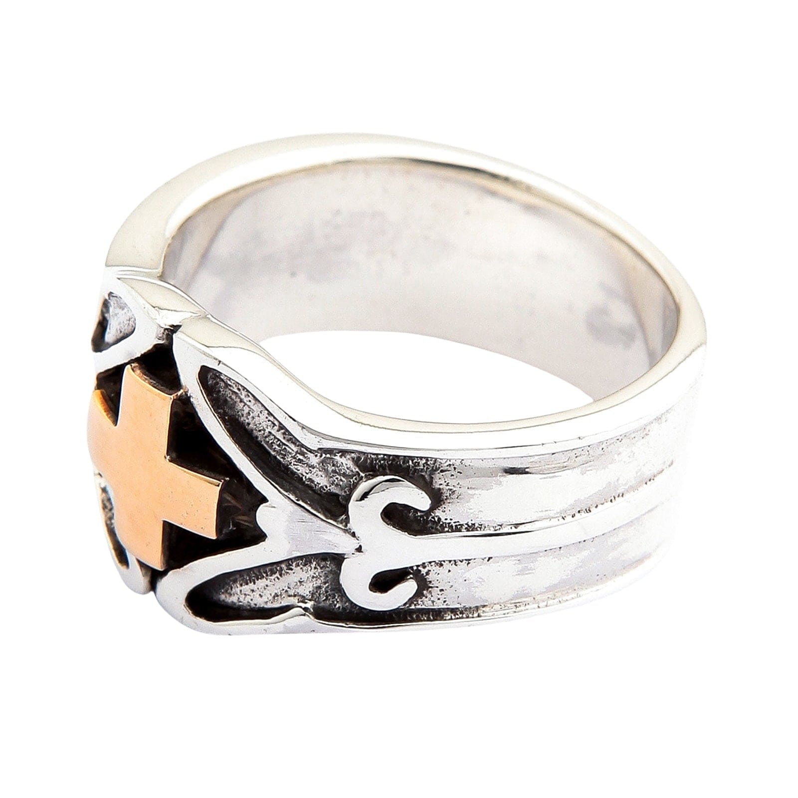 Two-Tone Artistry: The stunning contrast between the polished silver and the gold-plated cross makes this a versatile and eye-catching two-tone ring.