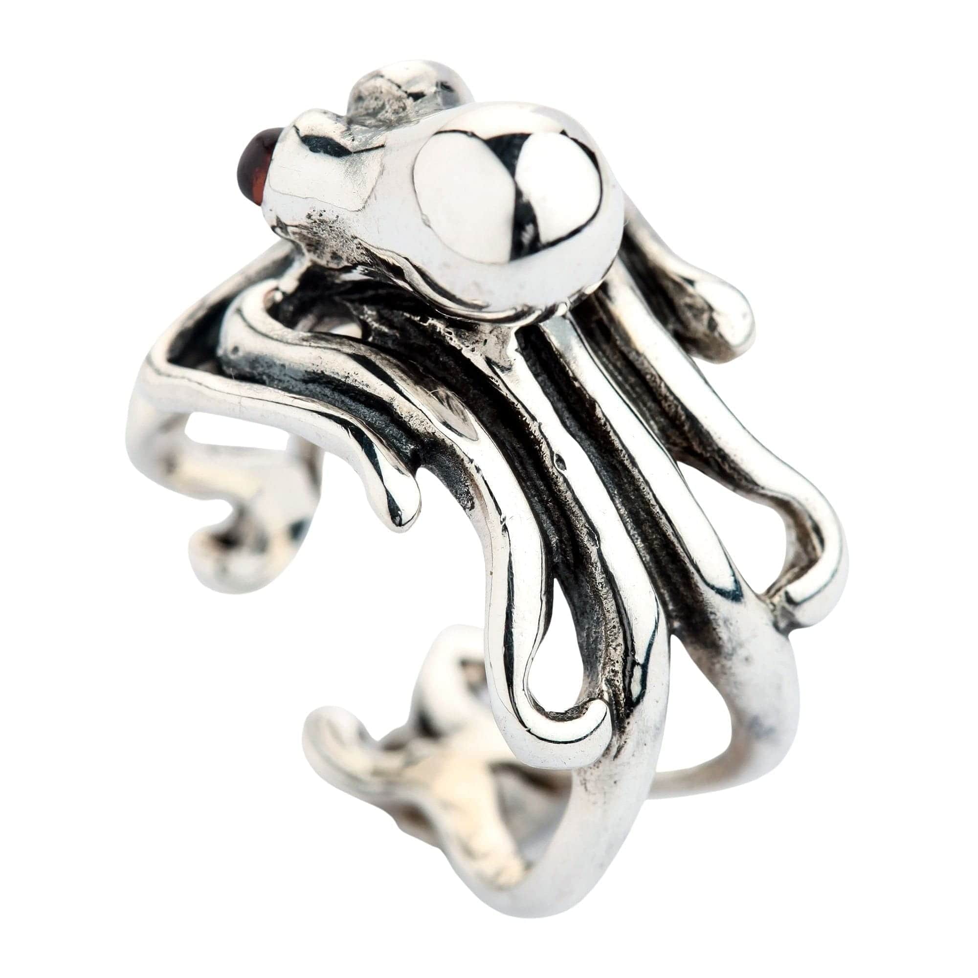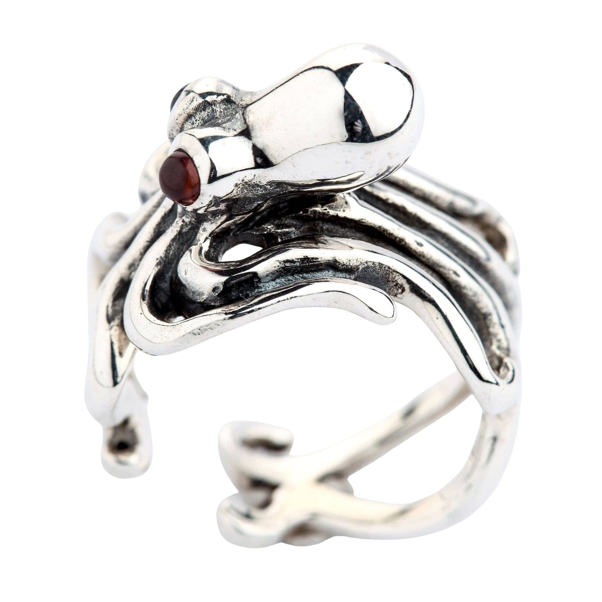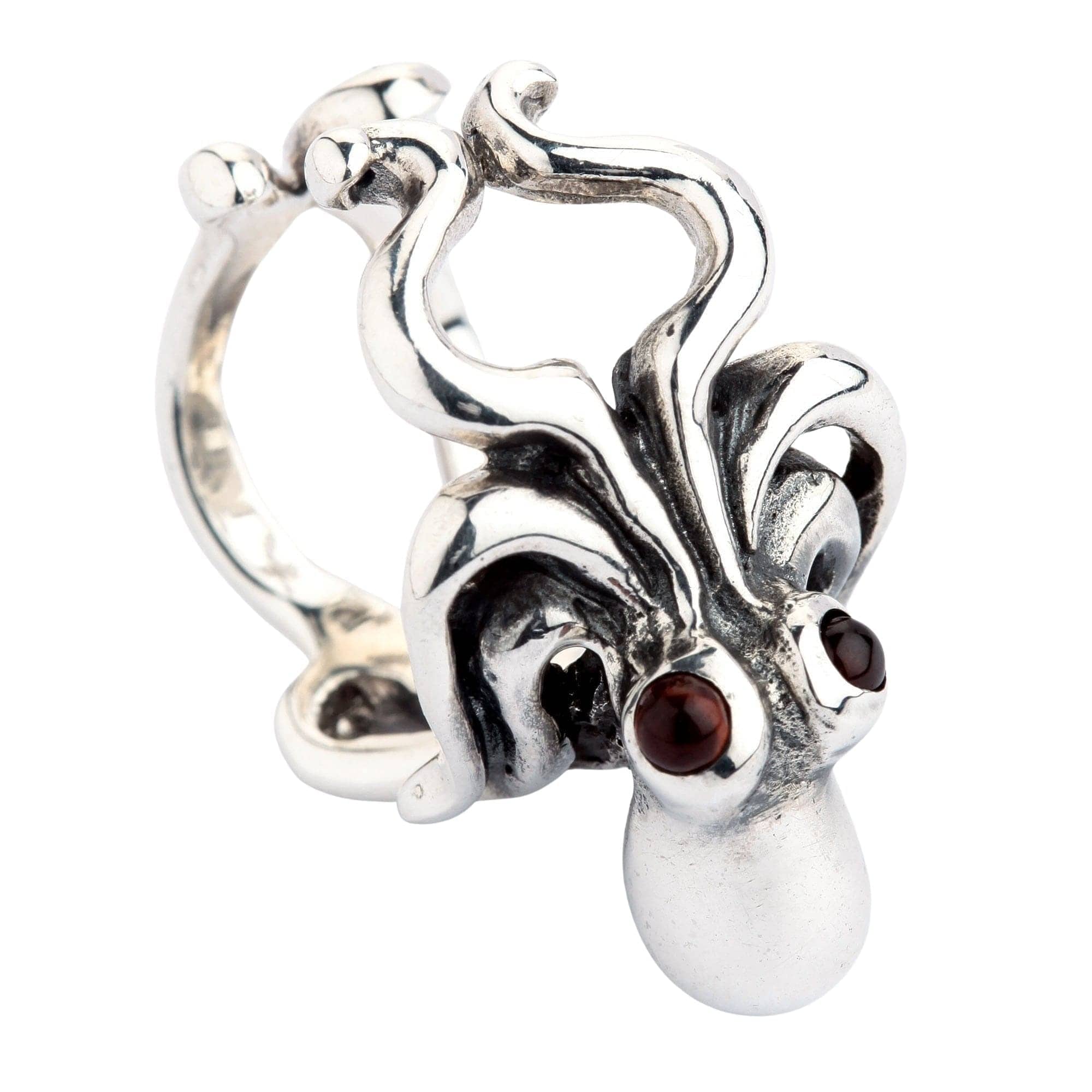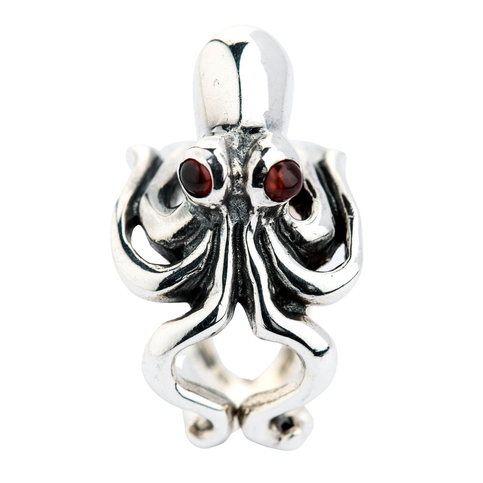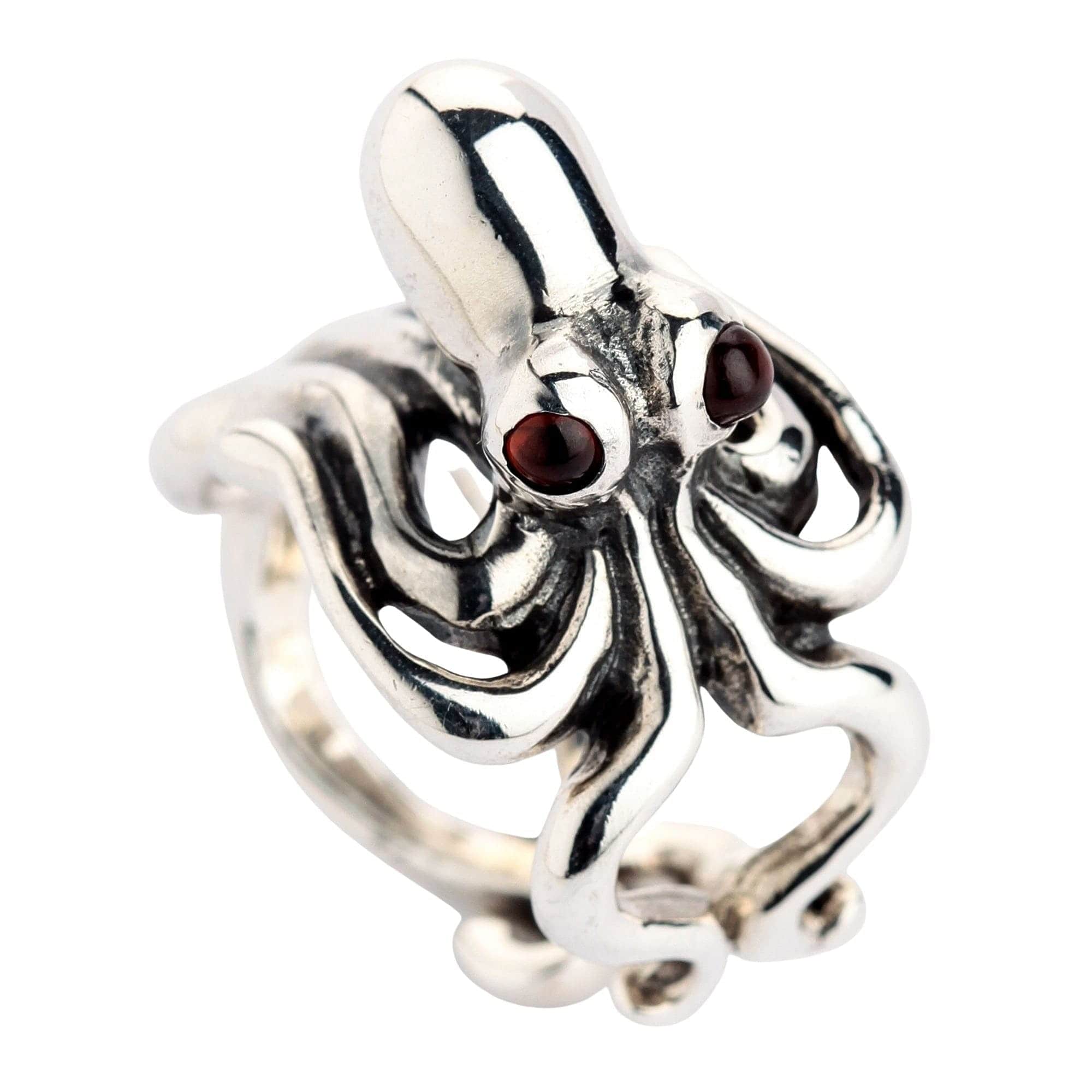 Sterling Silver Ladies Octopus Ring with Garnet Eyes