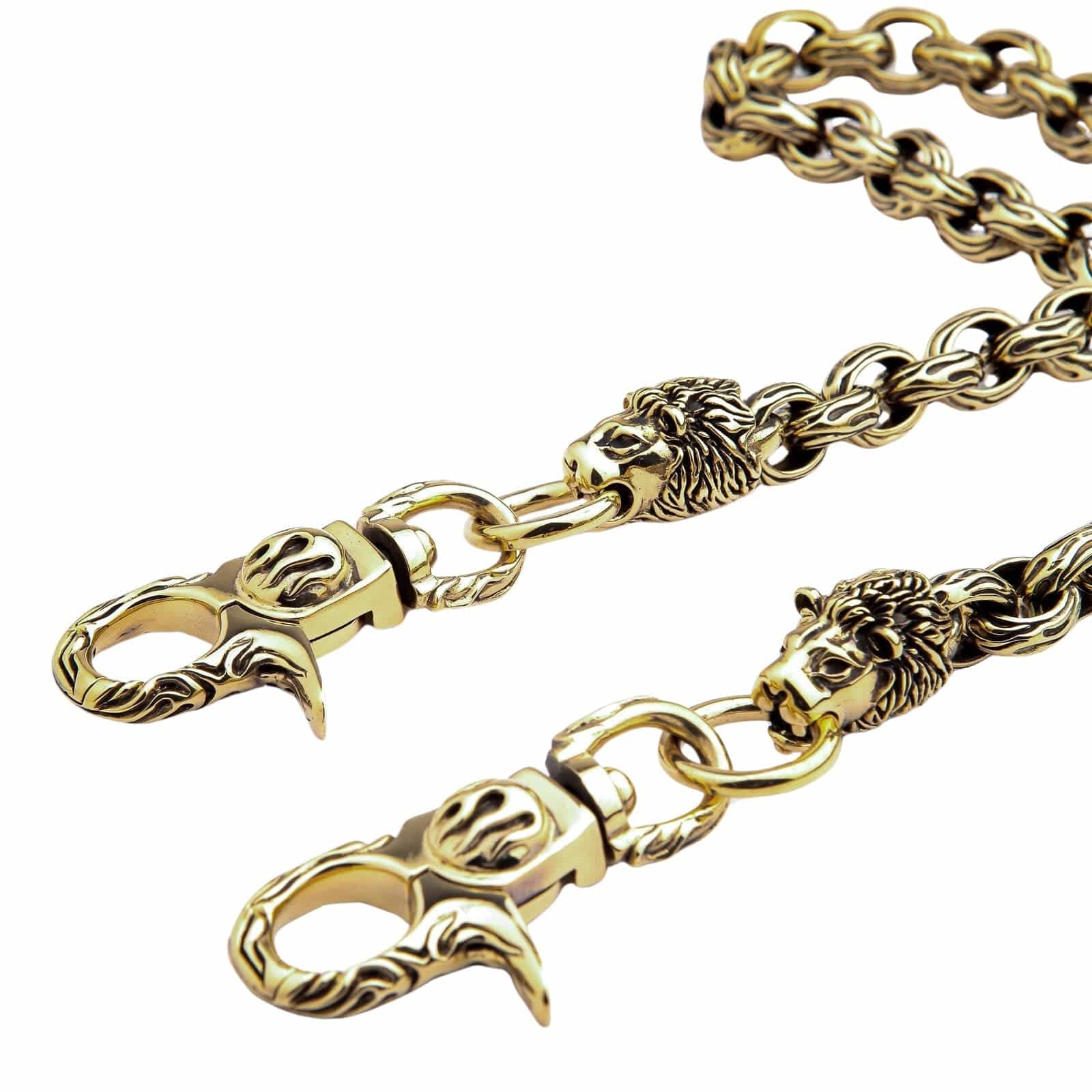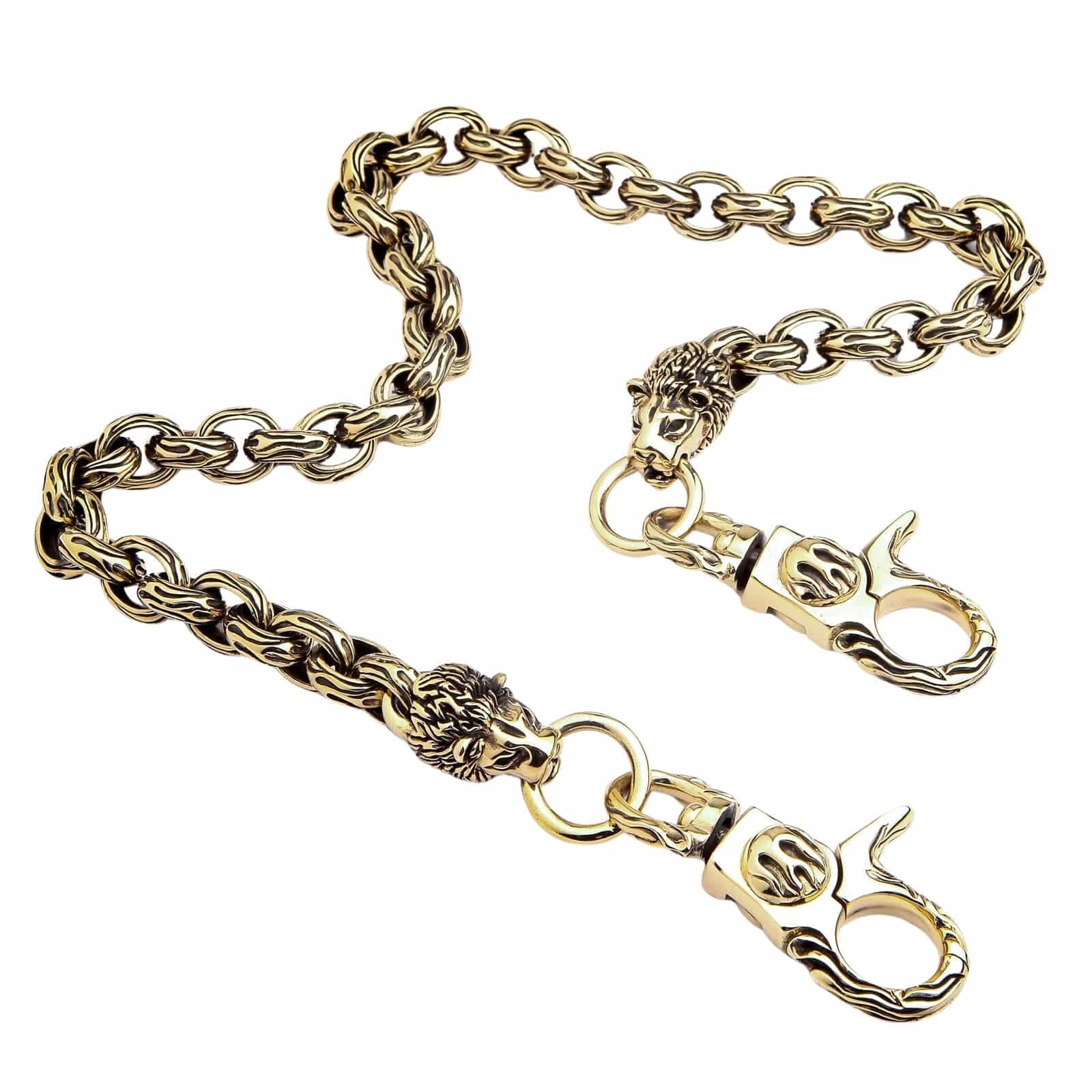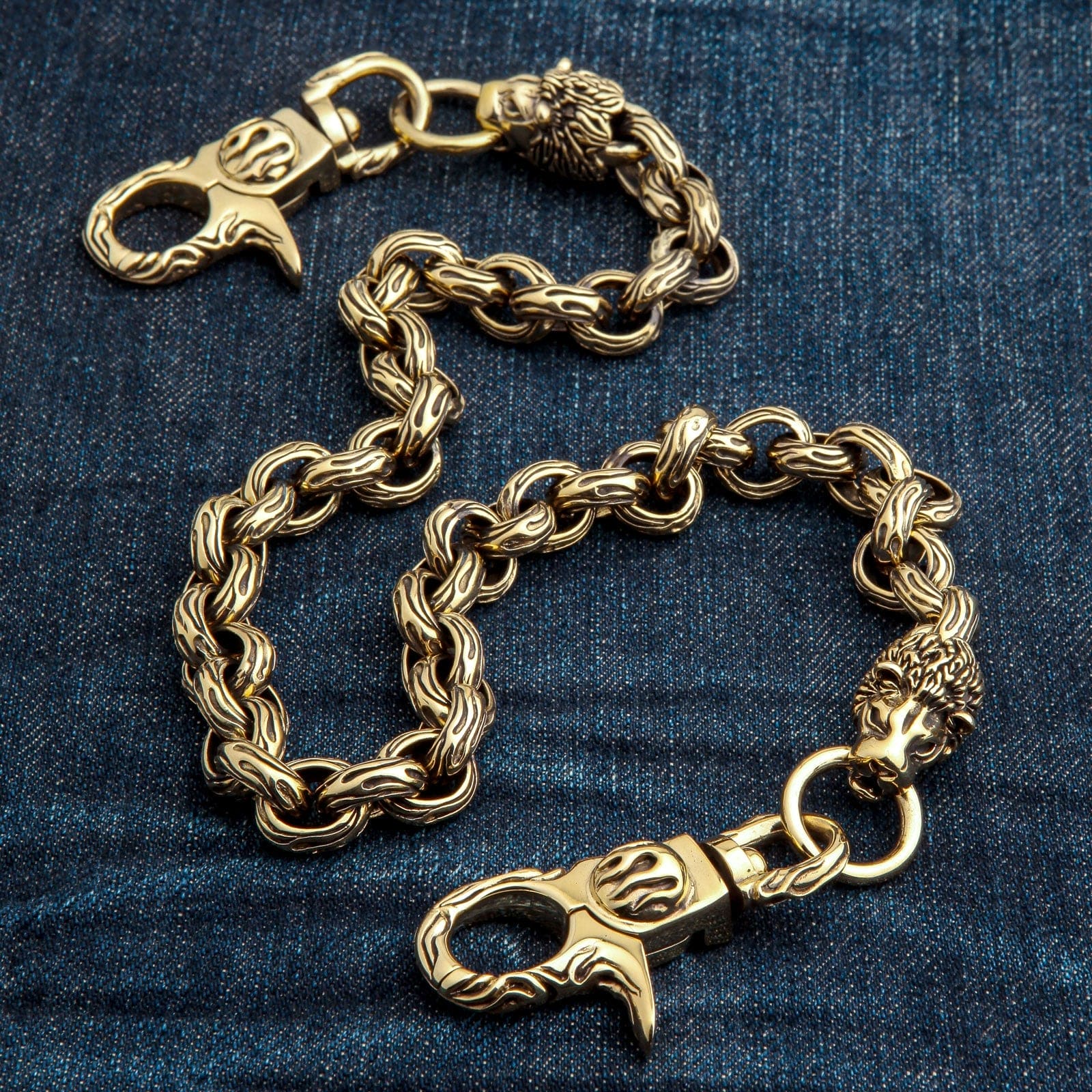 Unleash the king of the jungle and make an undeniable statement of power with this massive lion brass wallet chain. This is not merely a functional accessory; it's a piece of wearable armor, a symbol of royalty, courage, and untamed strength. Forged from a colossal 275 grams of solid brass, this chain is built for the leader of the pack who commands attention without saying a word.