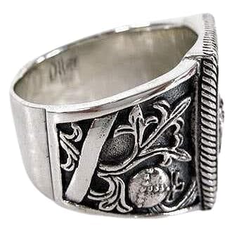 The central crest is framed by a rugged, rope-like border, while the shanks of the ring are adorned with ornate, gothic-style engravings, adding to its authentic, antique artifact feel. This Lion of St. Mark ring is a monument to handcrafted excellence. As a masterpiece of Heraldic Jewelry and a uniquely refined piece of Biker Jewelry, it is an heirloom-quality accessory, built with the strength and prestige of the legend it depicts.