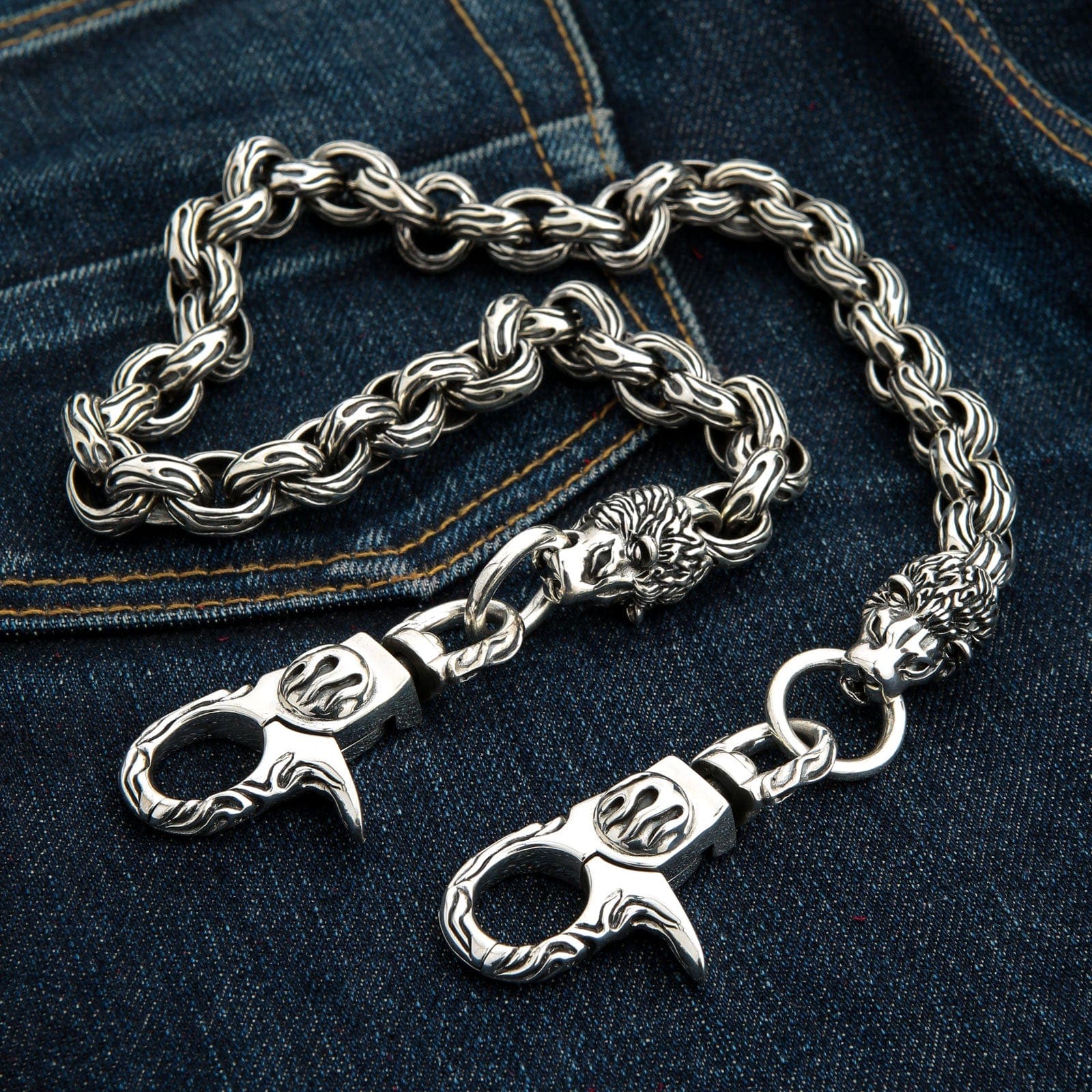 4. How do I attach a wallet chain securely? This chain features two sturdy, flame-engraved clasps. One attaches to the grommet on your wallet, and the other clips securely to a belt loop on your jeans. The swivels on the clasps are essential for a heavy chain like this, as they prevent it from twisting or tangling during movement.