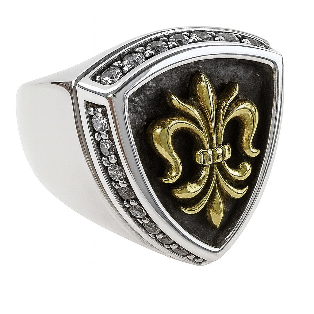 This is a ring built for a leader. Our men's gold fleur de lis ring combines timeless heraldry with a modern, rugged edge. This isn't just jewelry; it's a powerful statement of nobility and honor, designed as a commanding sterling silver shield ring. Crafted from solid 925 silver, it features a bold, gold-plated emblem that instantly sets you apart.