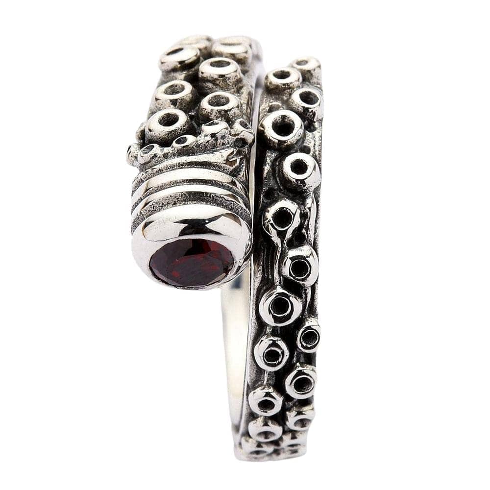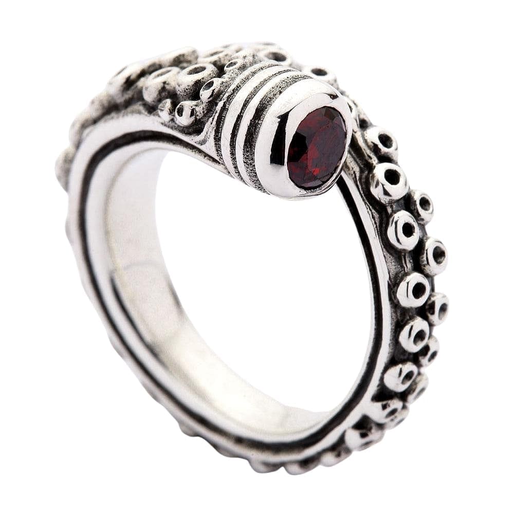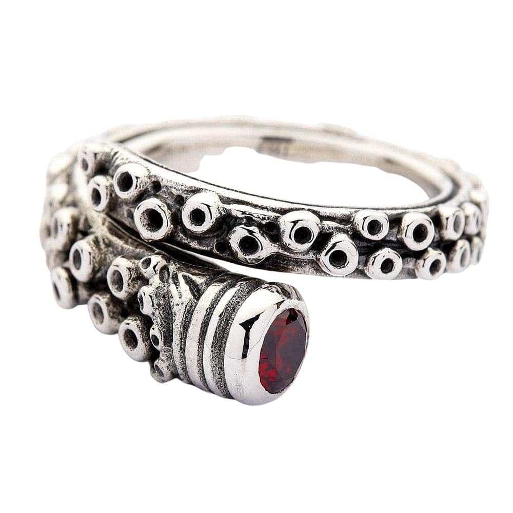 Octopus Tentacle Ring ā Sterling Silver Nautical Ring with Red Stone