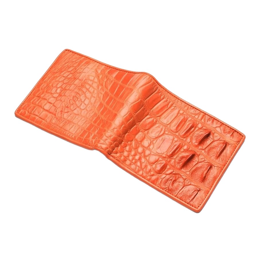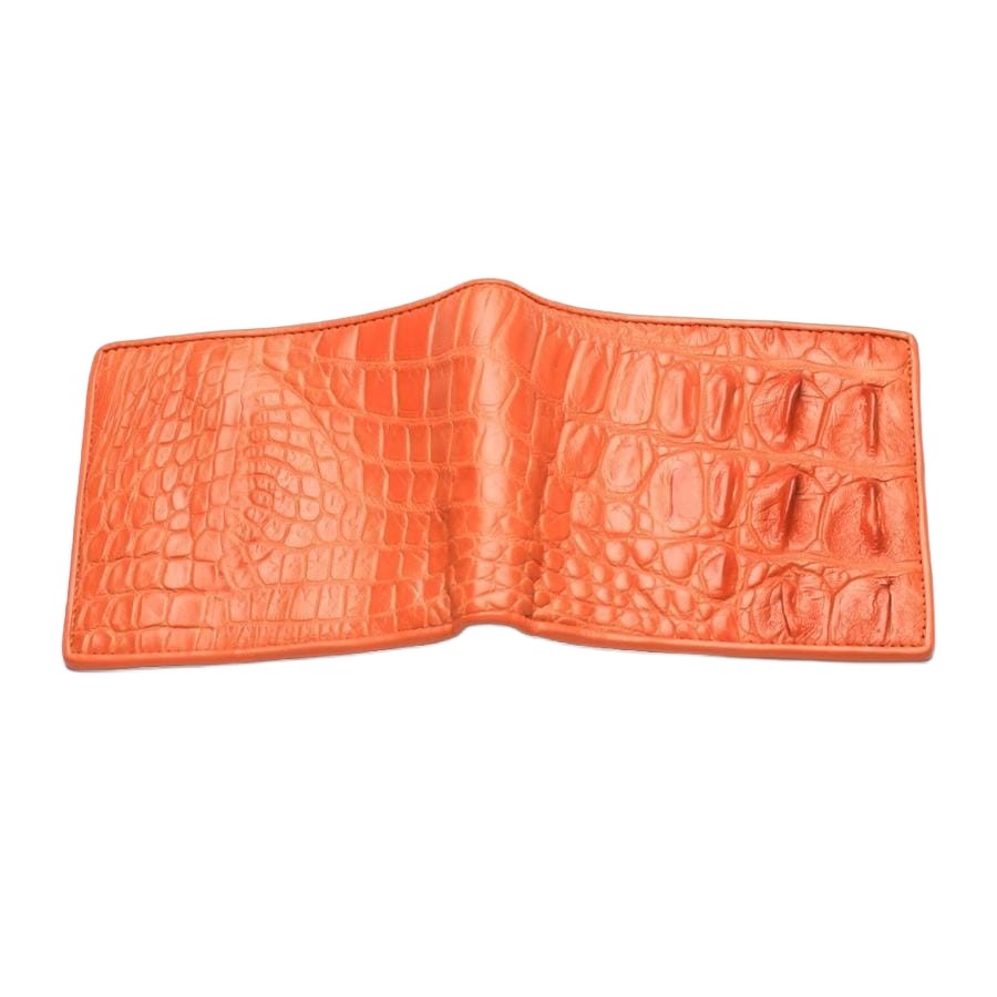 Q: How do I care for my bright orange crocodile wallet? A: Caring for an exotic leather wallet is simple. Wipe it with a soft, dry cloth to remove dust. Avoid prolonged exposure to direct sunlight or moisture. If it gets wet, pat it dry; don't rub. Using a specialized exotic leather conditioner once or twice a year can help maintain its suppleness.