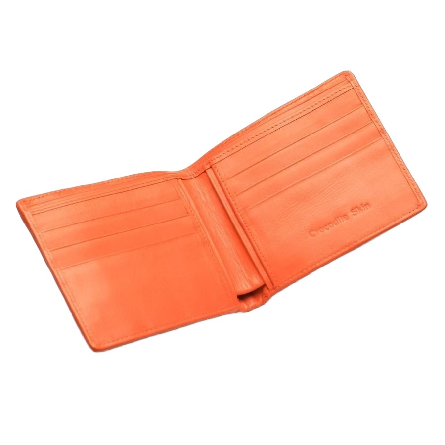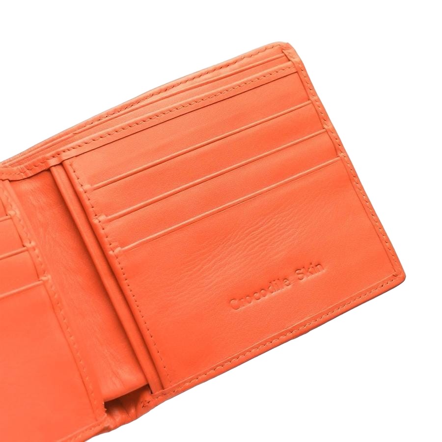 Men's Orange Crocodile Leather Bifold Wallet