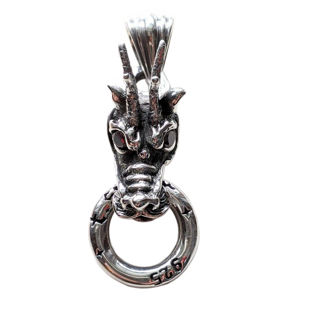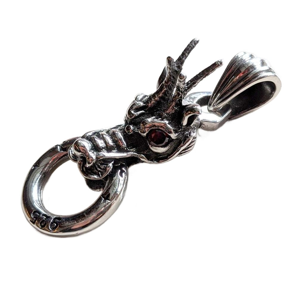 Red Garnet Eyes Sterling Silver Dragon Head Pendant