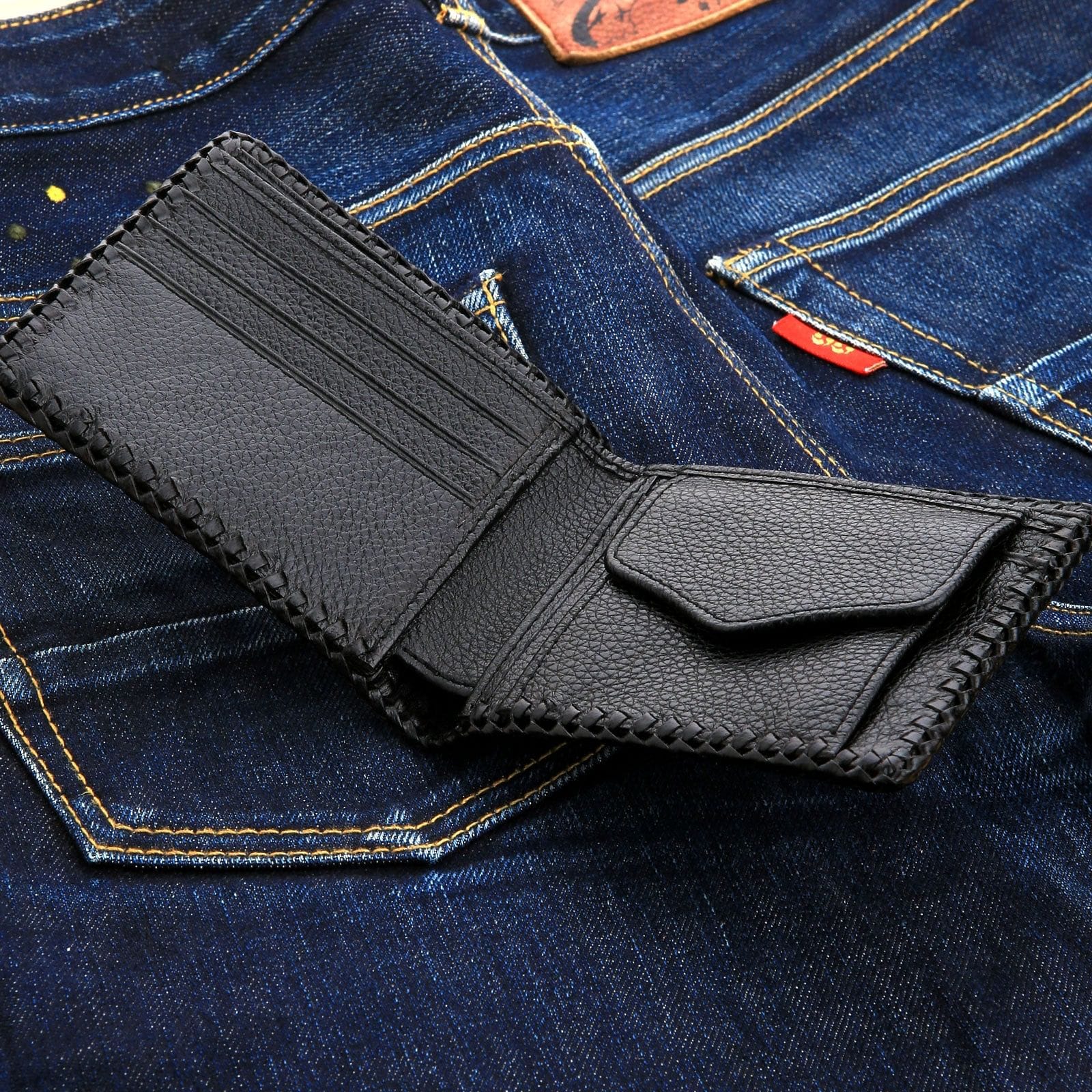 3. What is the edge of the wallet made of? The edge of the wallet features a distinctive braided leather lacing. This is a traditional, high-end finishing technique done by hand that not only adds a rugged, custom look but also significantly reinforces the seams for extra durability.