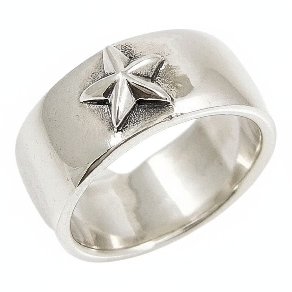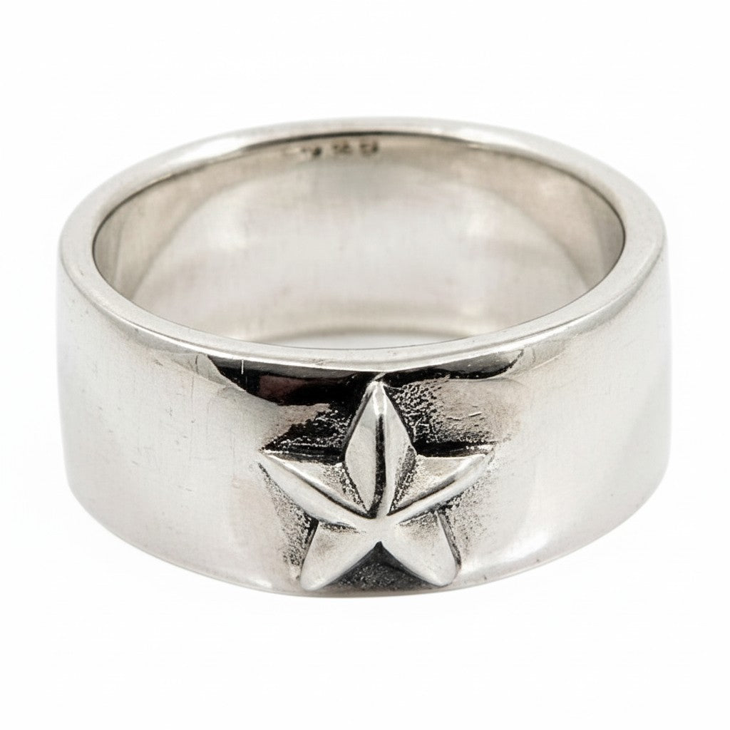 The power of this ring lies in its clean, bold, and uncompromising design. A single, perfectly rendered five-pointed star sits proudly on the face—a timeless symbol of ambition, excellence, and the defiant spirit of a true rock star. The star itself features subtle texturing, giving it a rugged, road-worn feel that contrasts with the brilliantly polished silver band. This is a ring built for the main stage; its wide 11mm band has a commanding presence, while the smooth, comfort-fit interior makes it perfect for everyday wear. Weighing a solid 10 grams, it has the satisfying heft of real, quality hardware.