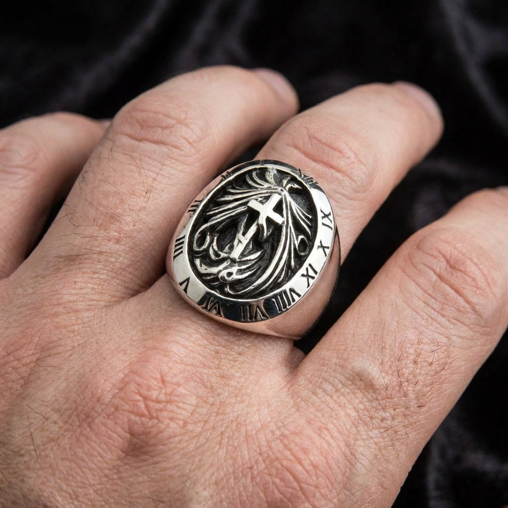This is not just a ring; it's a profound meditation on time, sacrifice, and eternity. Our roman numeral gothic signet ring is a powerful piece of wearable art, designed for the man who understands the weight of history and faith. Forged from a massive block of solid sterling silver, this ring serves as a powerful memento mori—a reminder that every moment is precious.